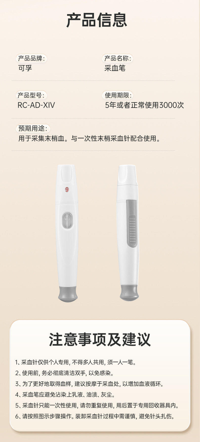 可孚采血笔刺血针笔采指血针测血糖针刺络放血针头一次性拔罐泻血