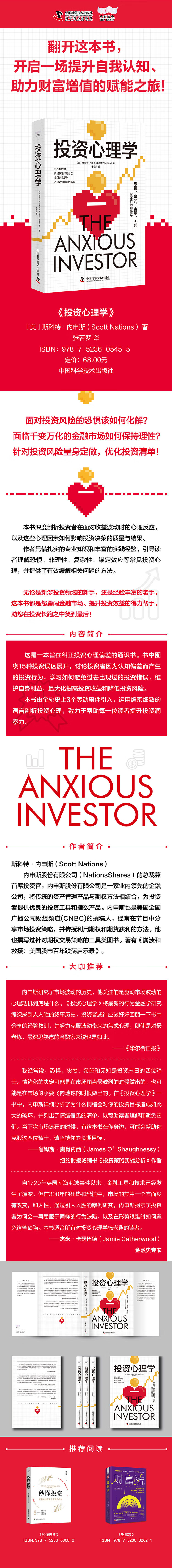 本书深度剖析投资者在面对收益波动时的心理反应,以及这些心理因素如何影响投资决策的质量与结果。作者凭借扎实的专业知识和丰富的实践经验,引导读者理解恐惧、非理性、复杂性、锚定效应等常见投资心理,提供有效缓解相关心理问题的方法。