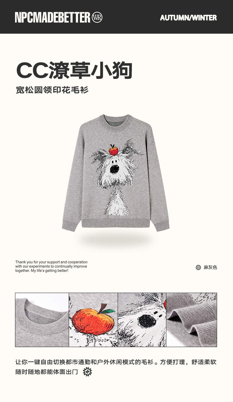 NPC潮牌CC系列刺绣苹果小狗印花针织毛衣男童趣秋上新CC59SW02