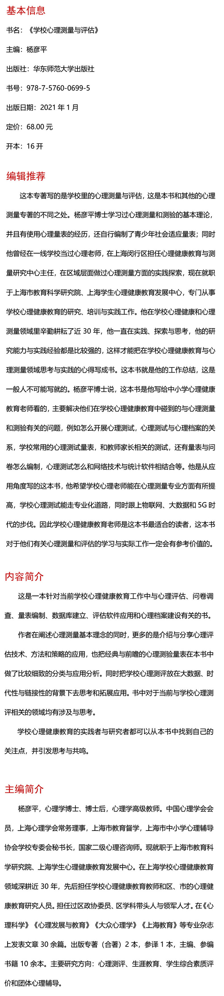 学校心理测量与评估 心理健康教育 心理老师专业发展