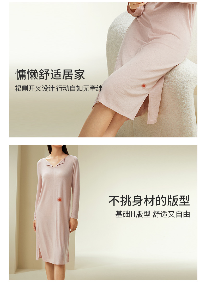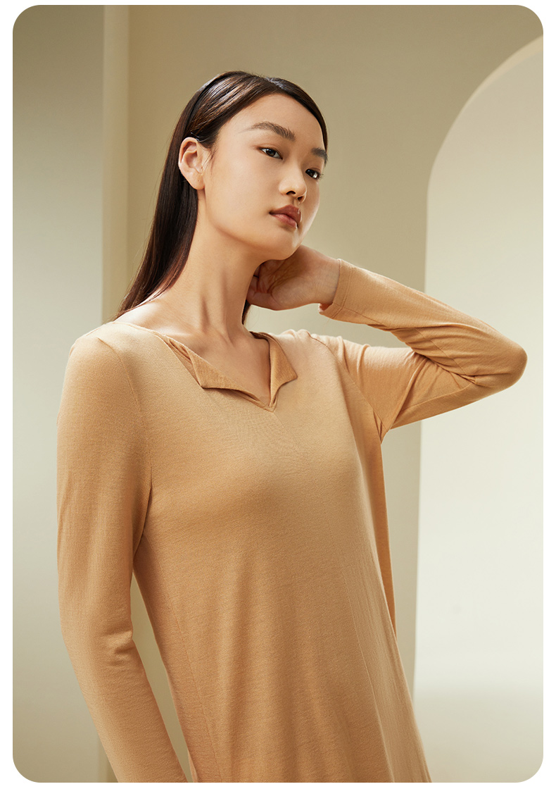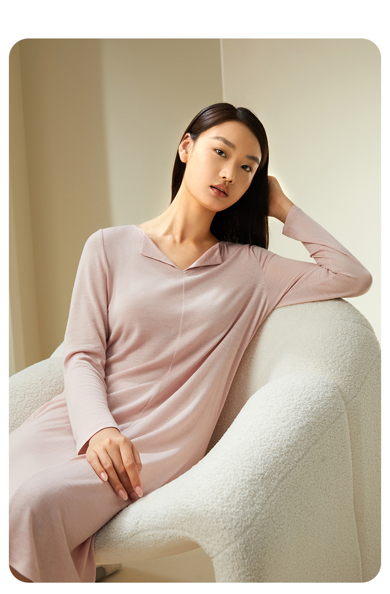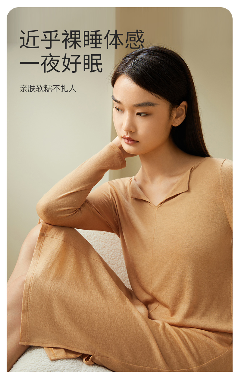 【暖暖家居服】绵羊毛桑蚕丝亲肤软糯温暖不厚重裸感长袖睡裙金三塔 YZFDD301
