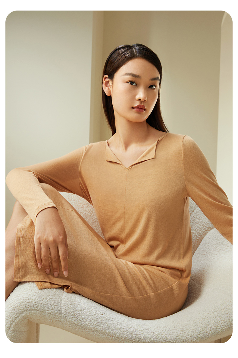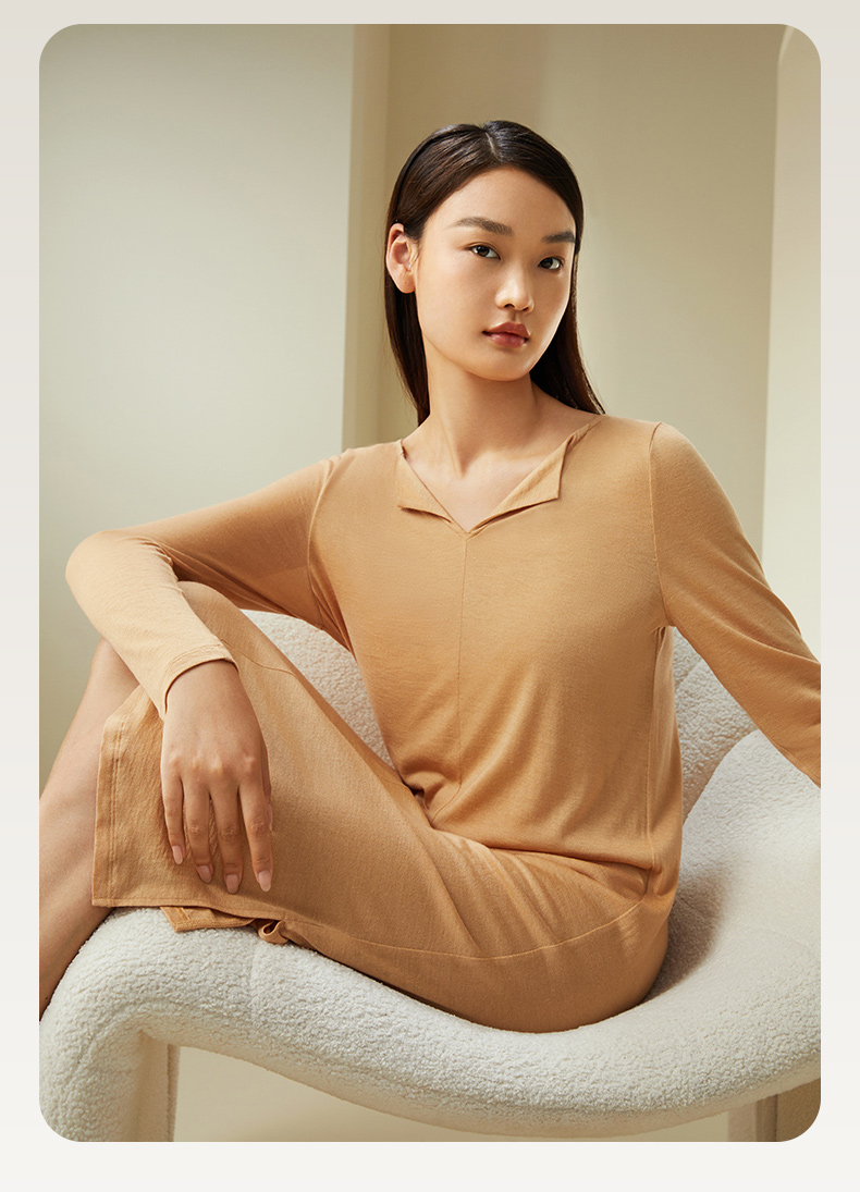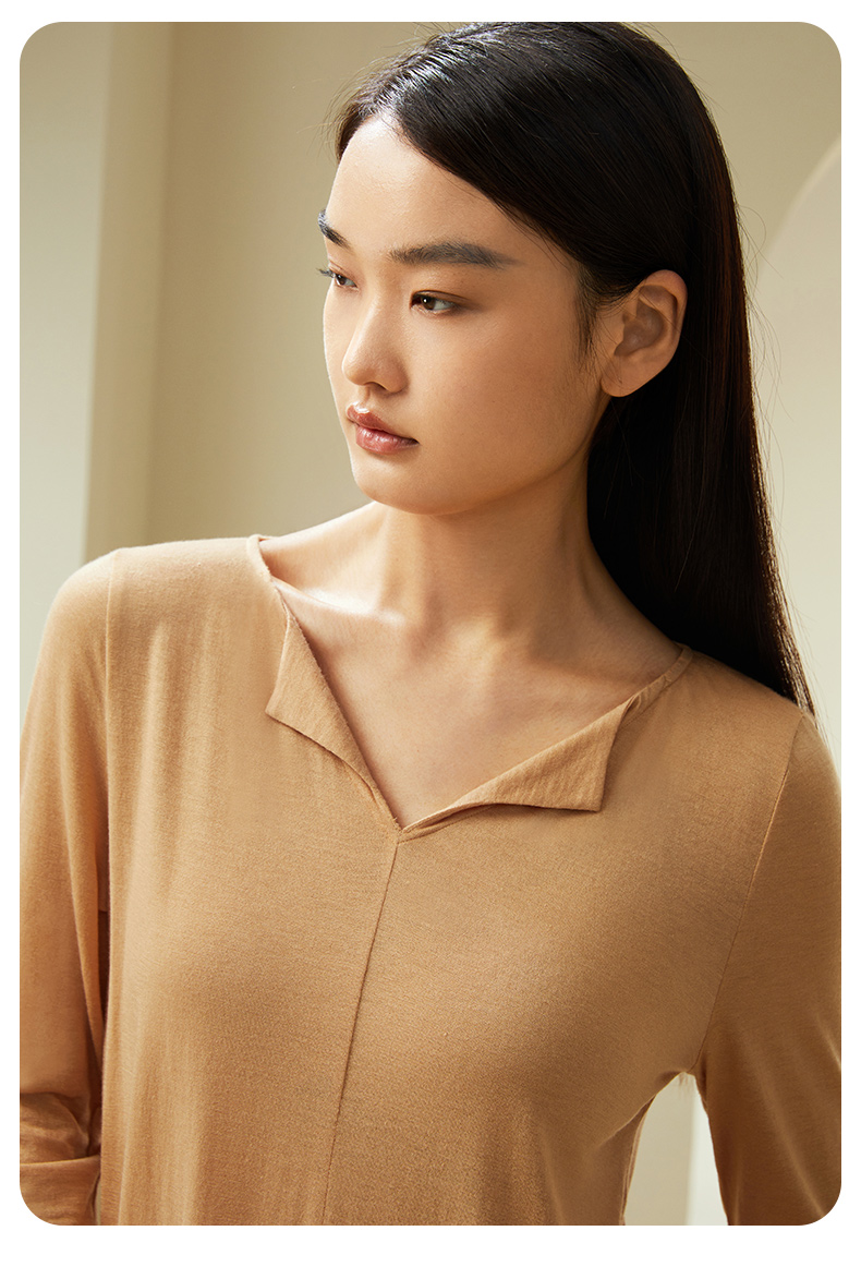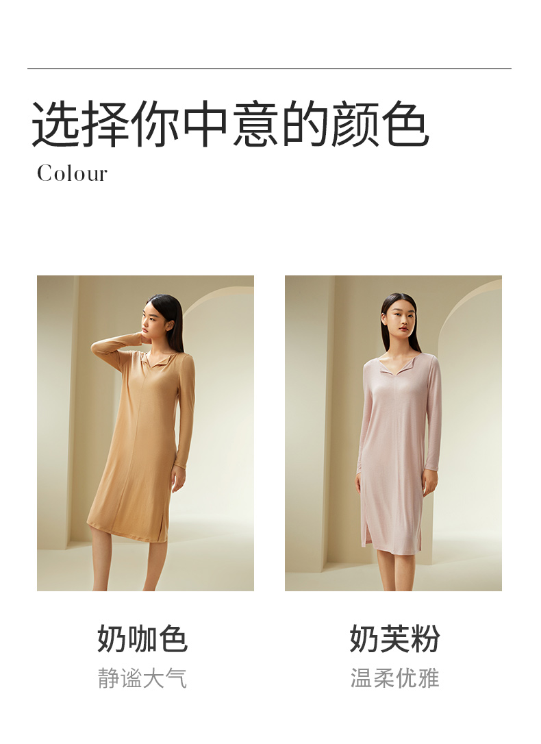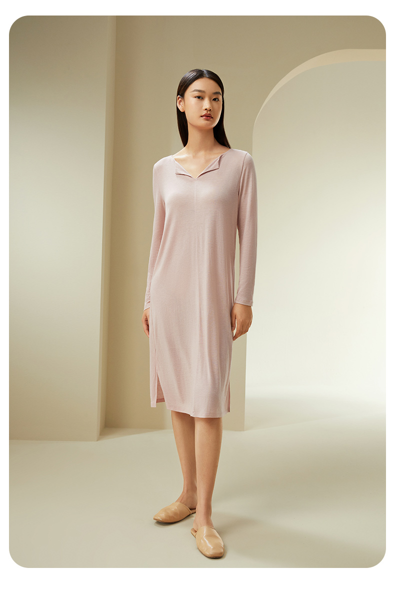 【暖暖家居服】绵羊毛桑蚕丝亲肤软糯温暖不厚重裸感长袖睡裙金三塔 YZFDD301
