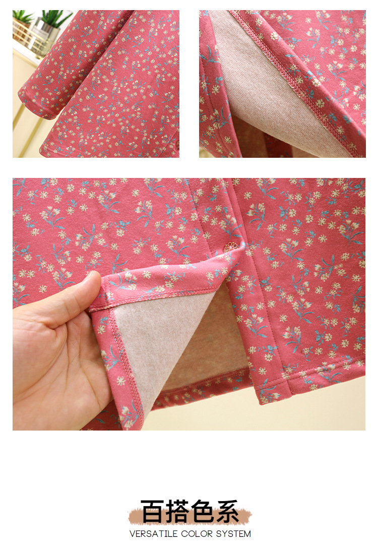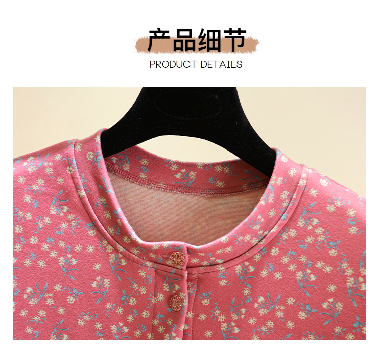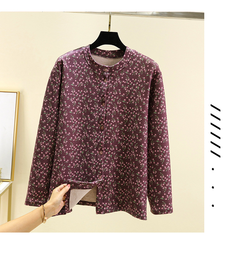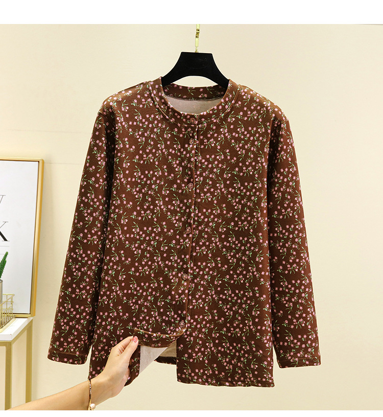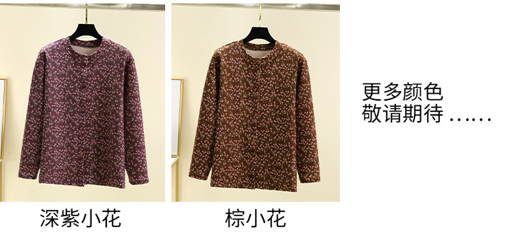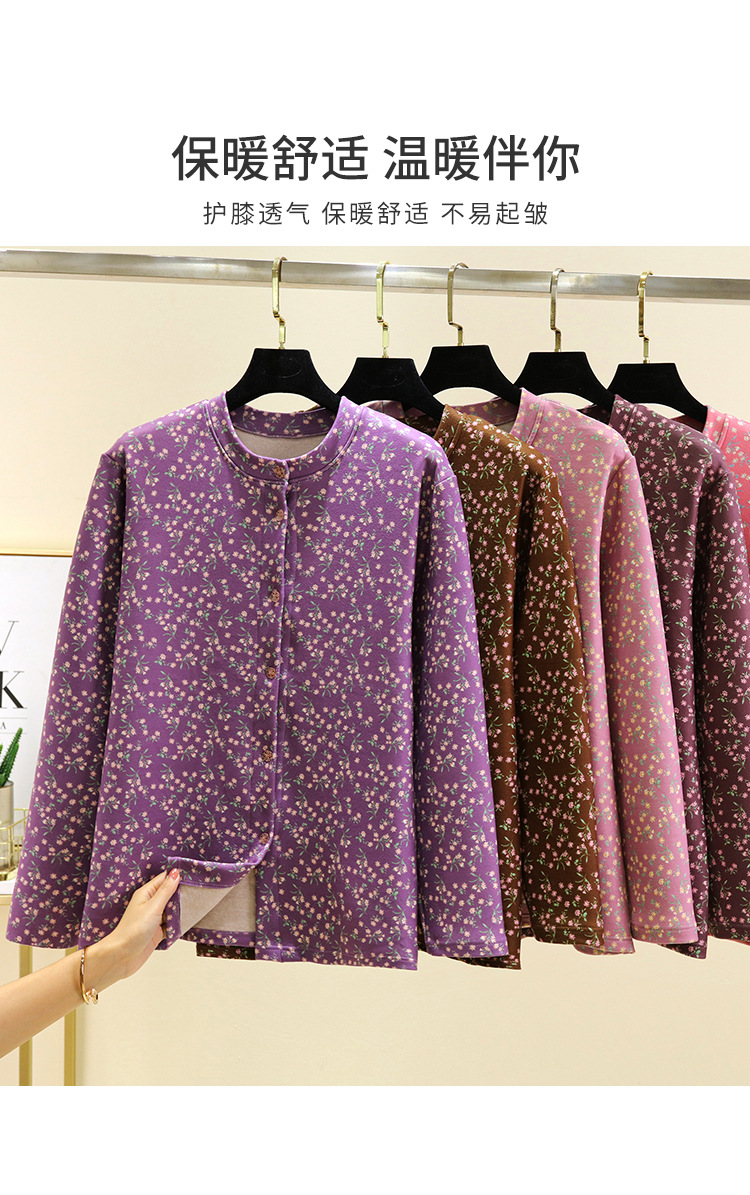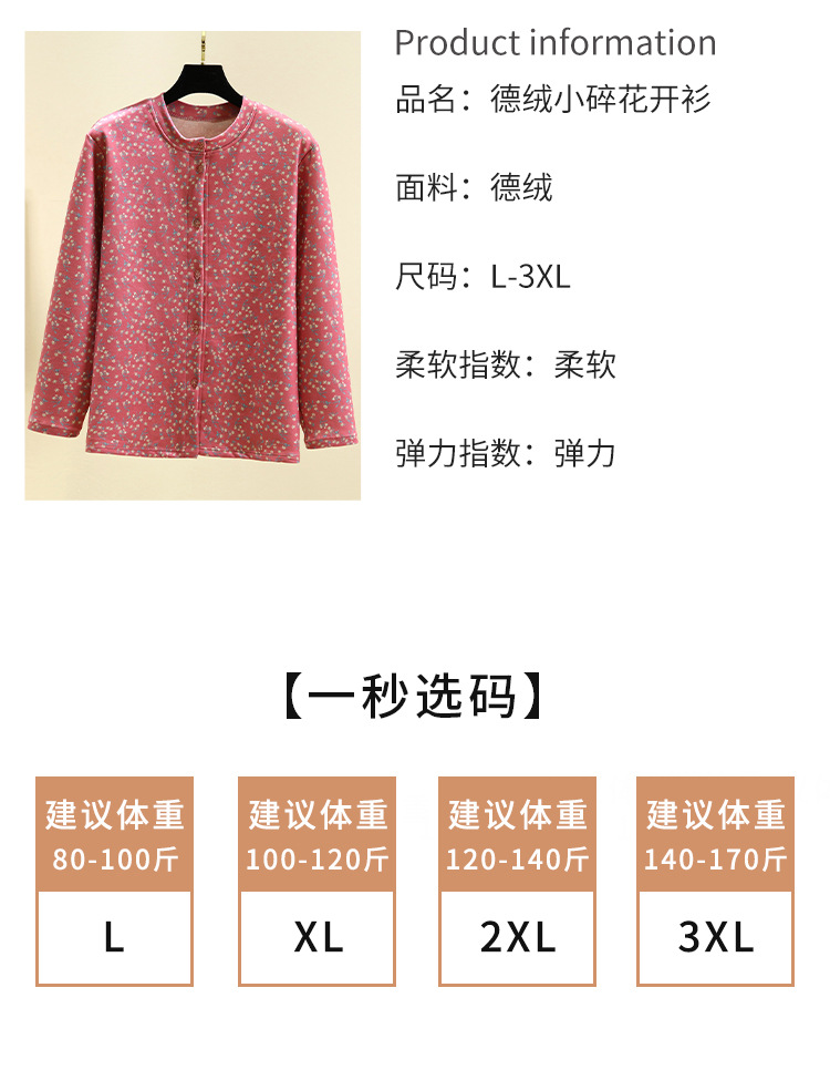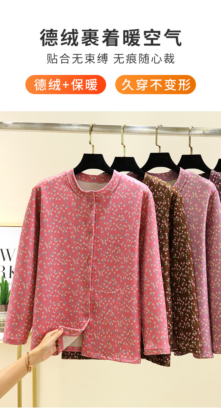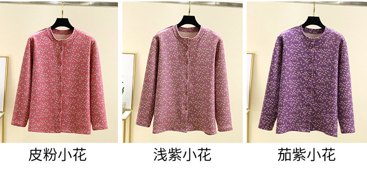 中老年德绒保暖开衫冬加绒加厚碎花系扣上衣双面磨毛妈妈装家居服_HLY