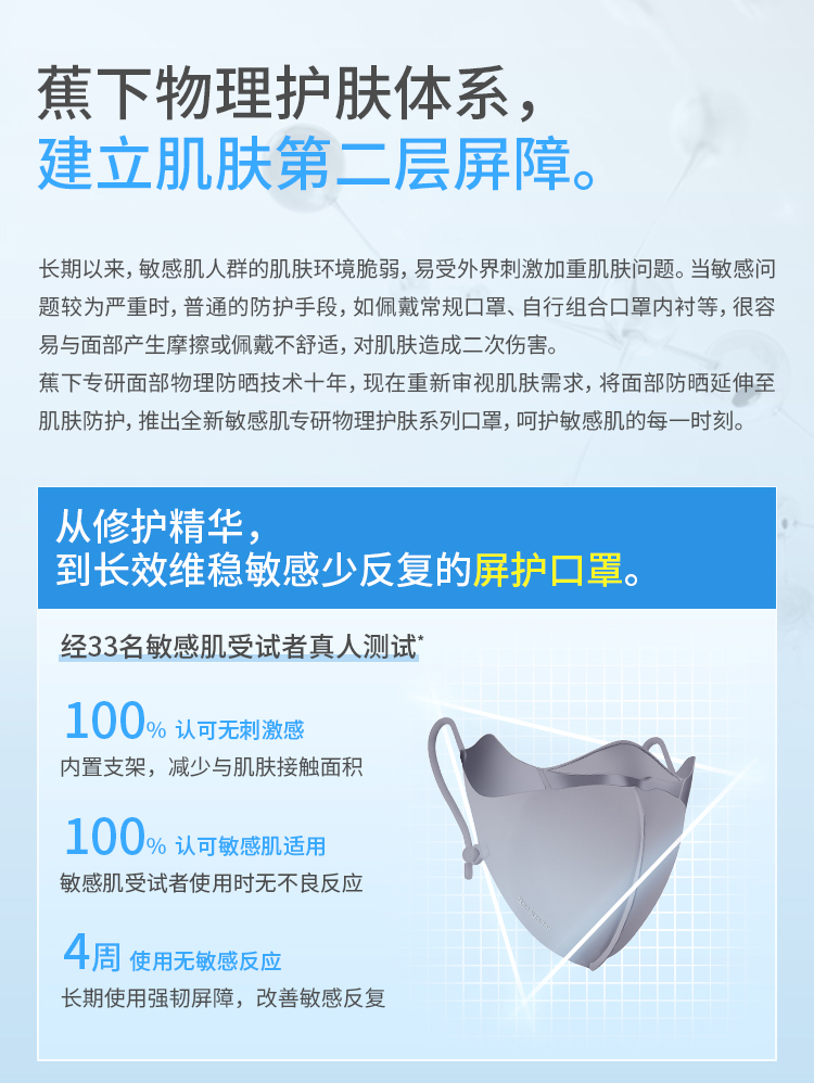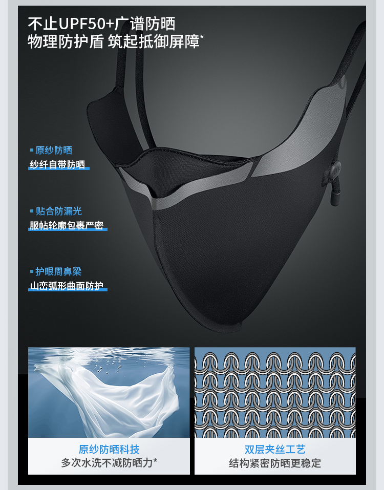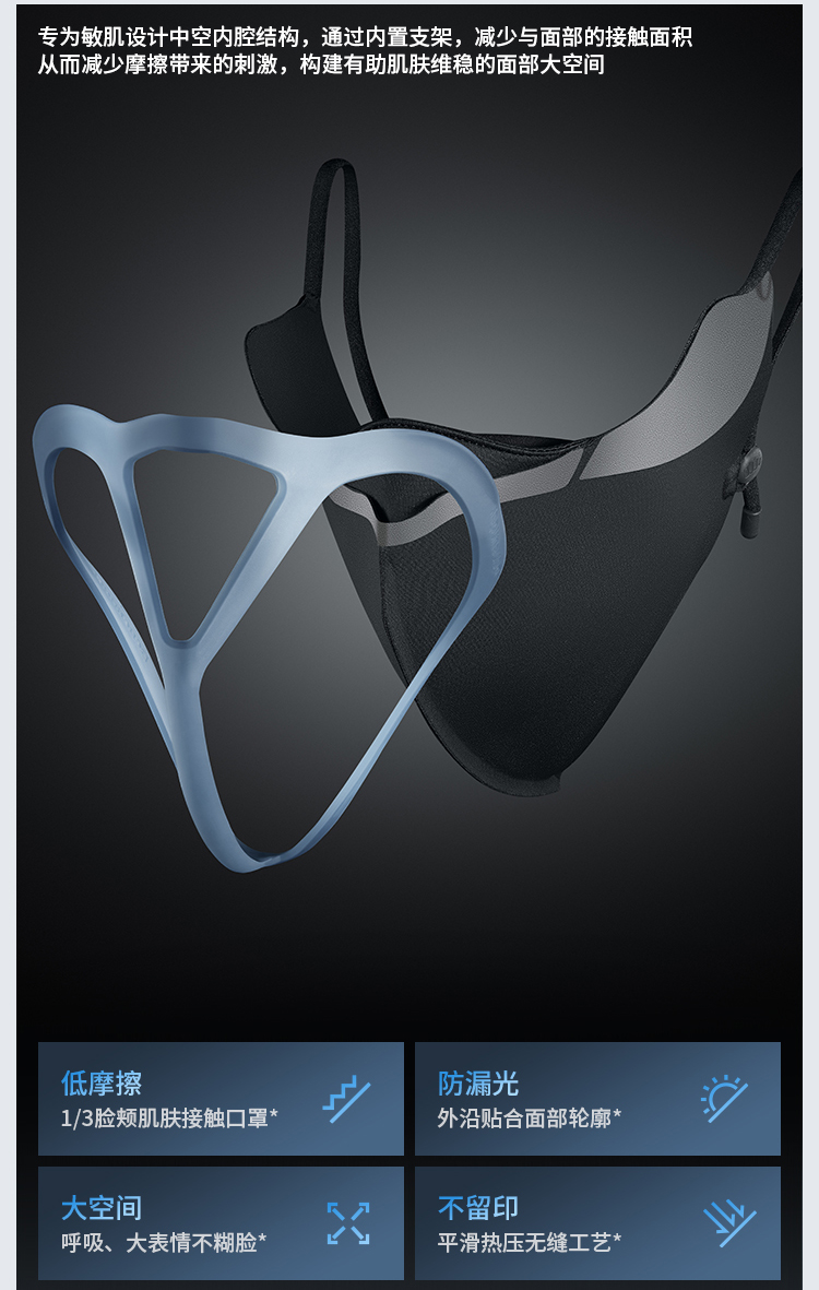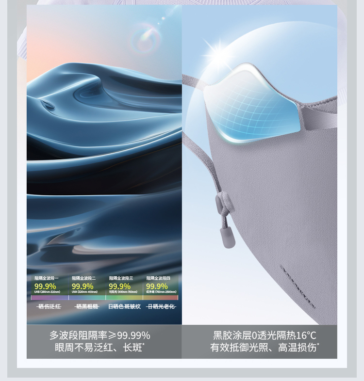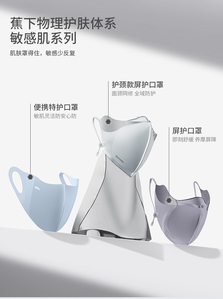 蕉下屏护罩防晒口罩SS35724空腔支撑黑胶冰丝透气敏感肌修护脸罩