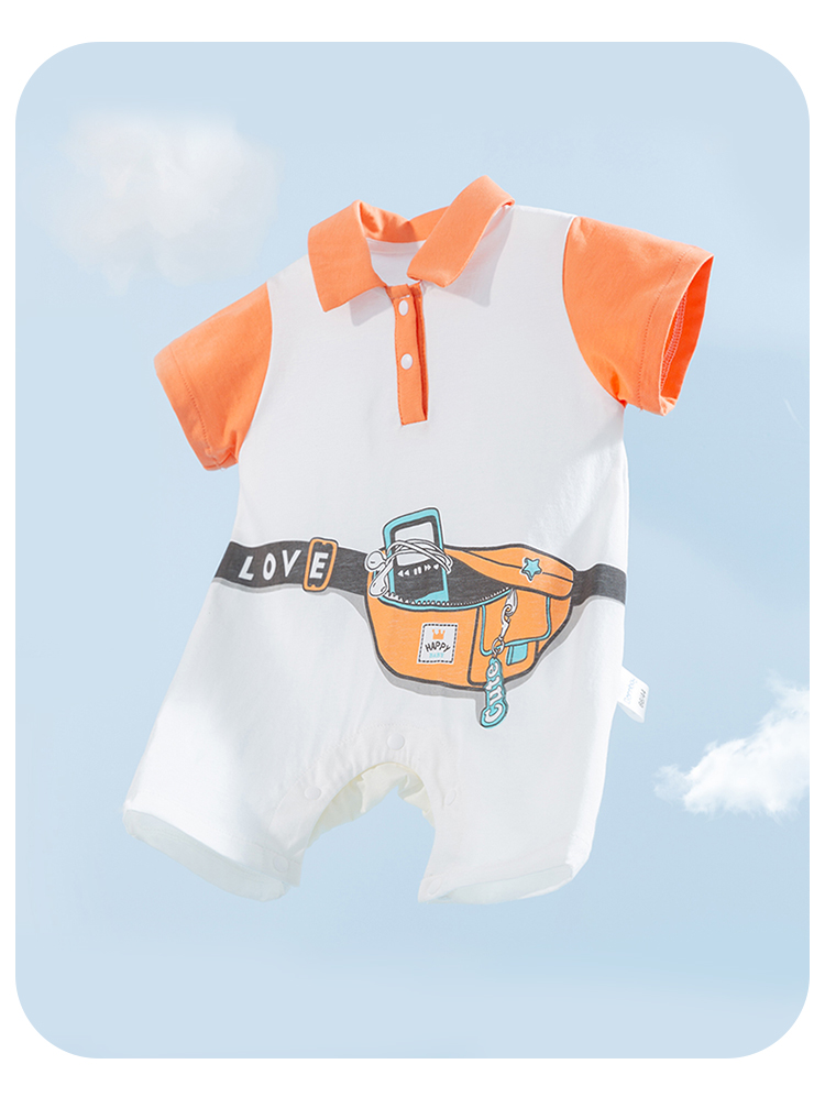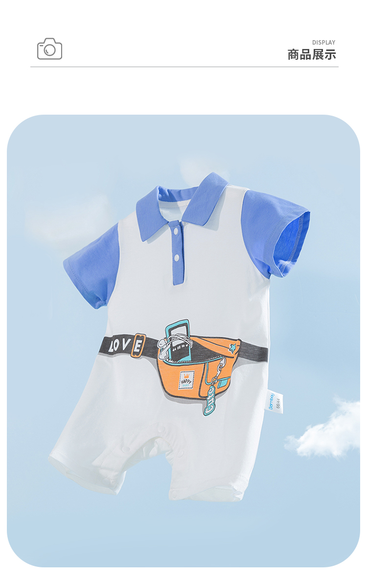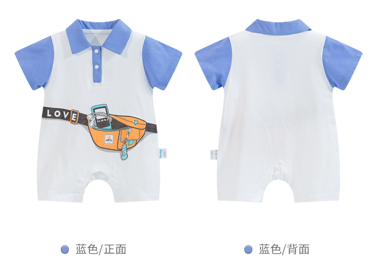 贝贝怡婴幼儿哈衣夏季翻领开裆连体衣男女宝宝衣服薄款纯棉爬服232L2031