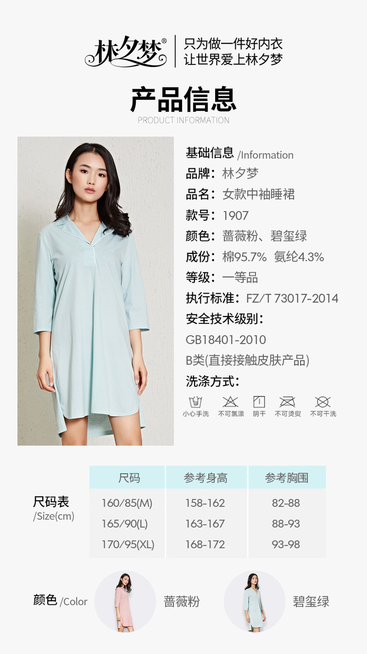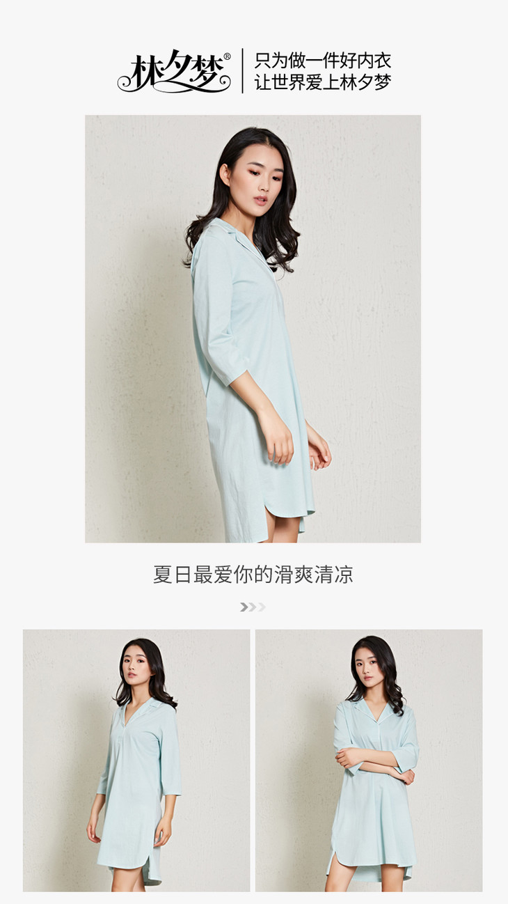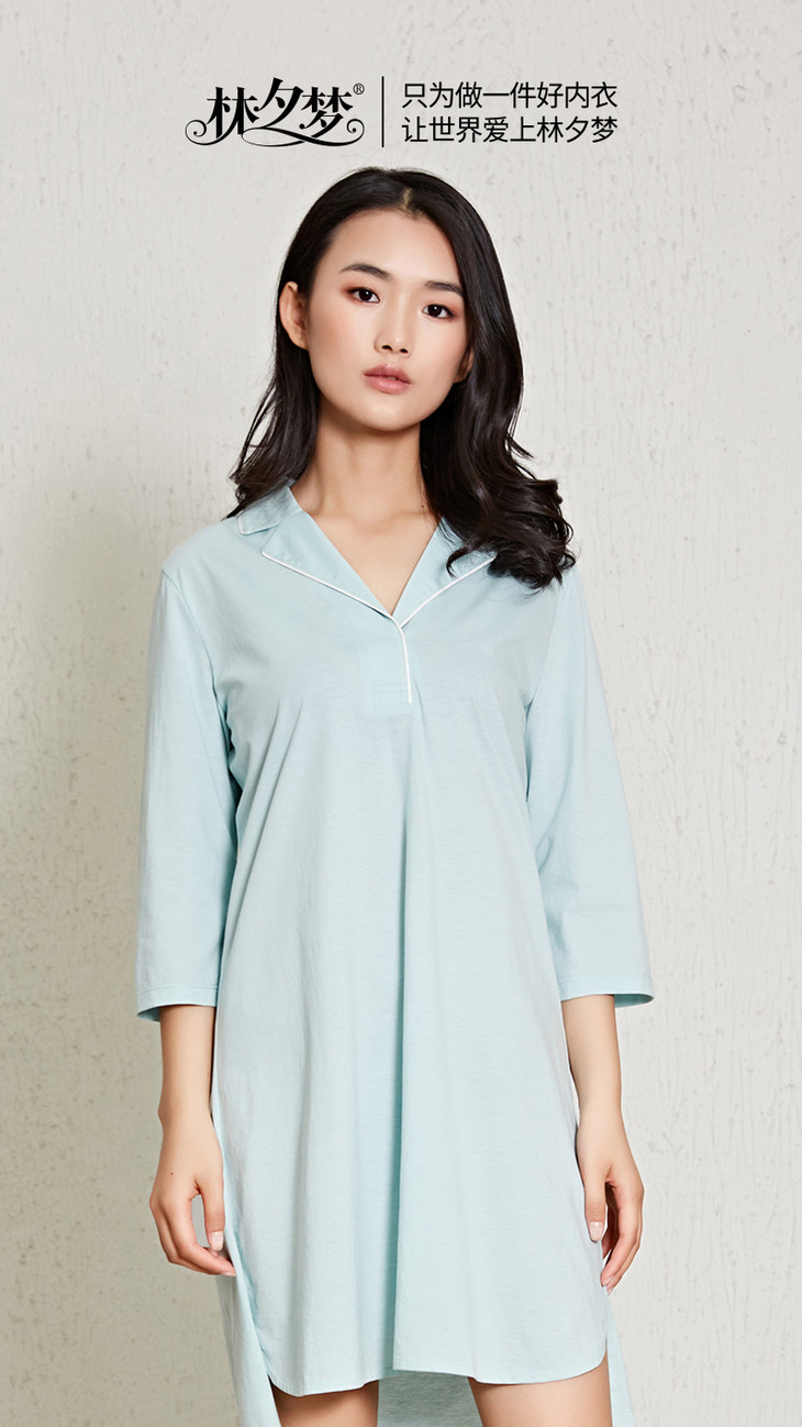 【女款中袖睡裙】滑爽舒适 精致套头衬衫领 纯棉亲肤 细腻柔滑 简约舒适_1907