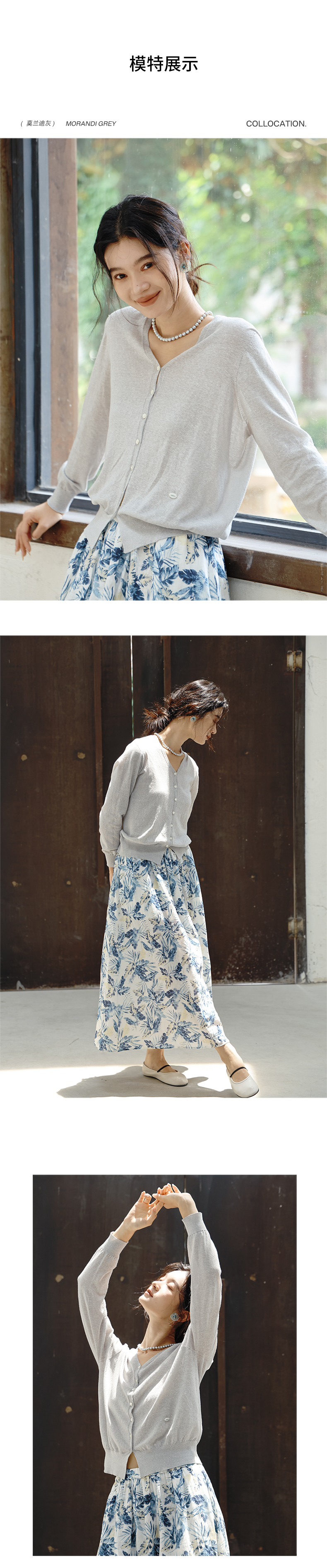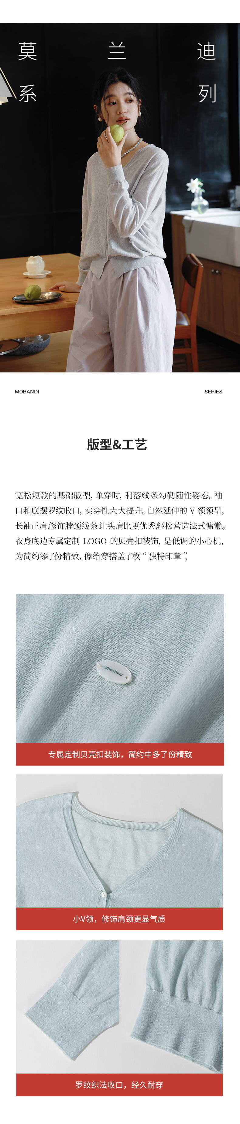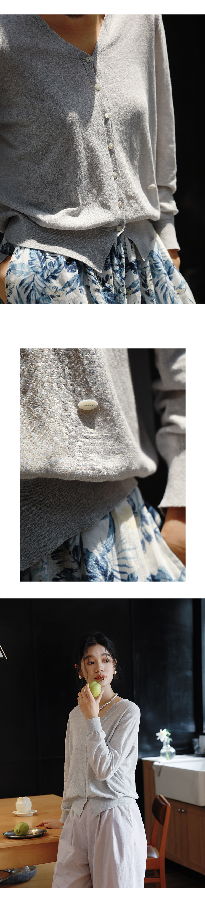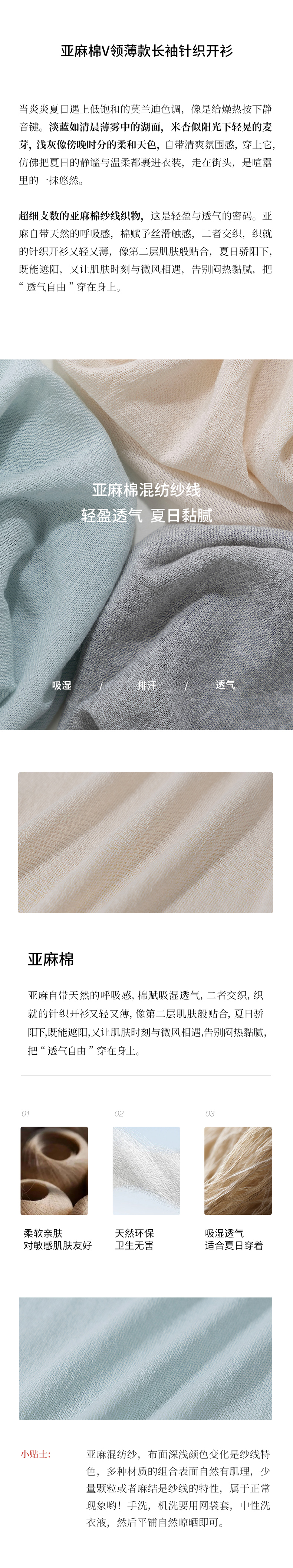 绽放女装419朵/【莫兰迪系列】超细亚麻棉混纺V领薄款长袖针织开衫