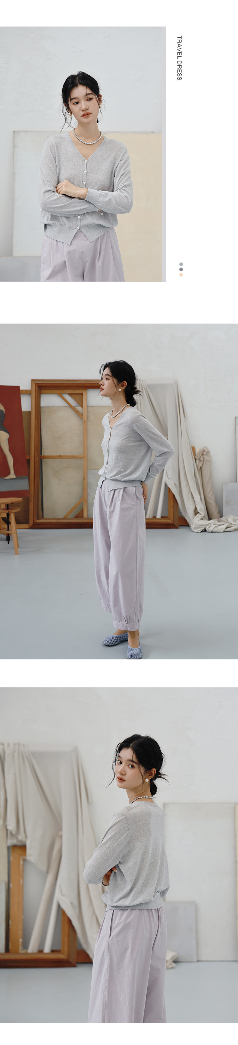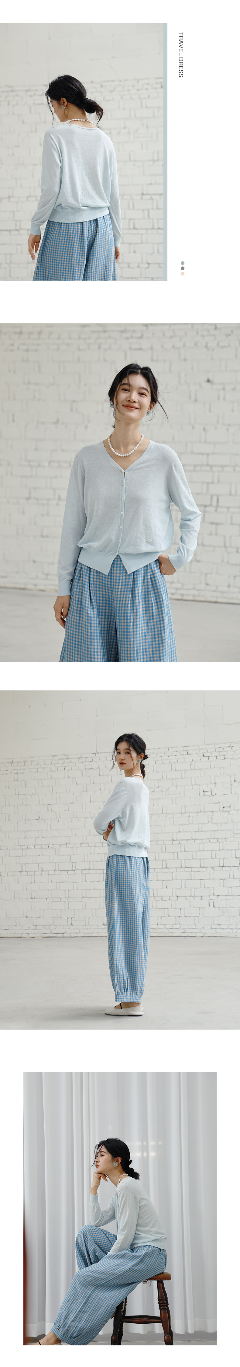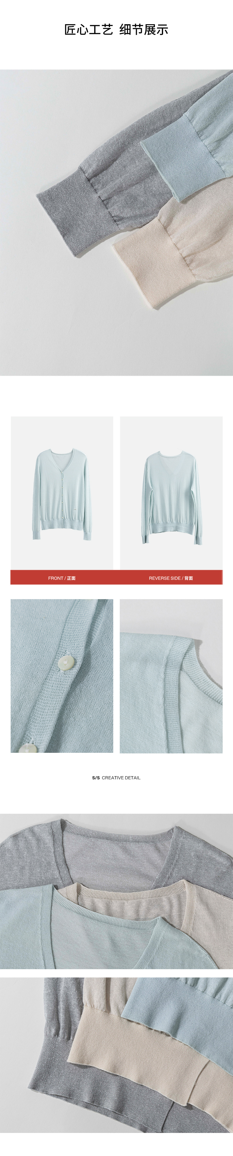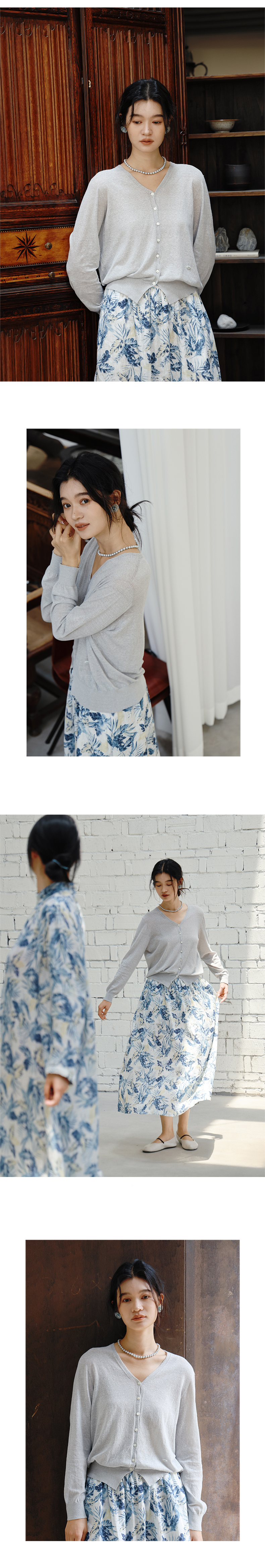 绽放女装419朵/【莫兰迪系列】超细亚麻棉混纺V领薄款长袖针织开衫