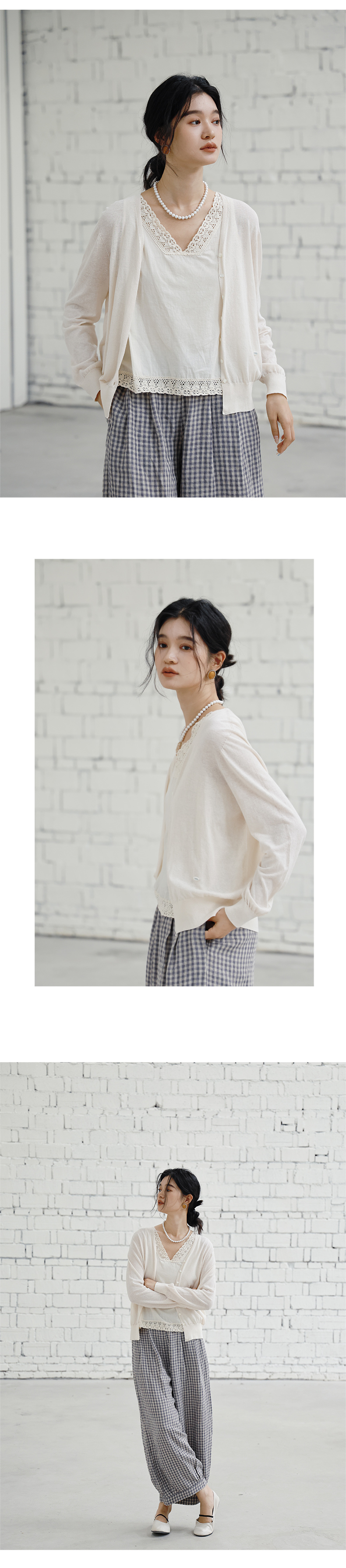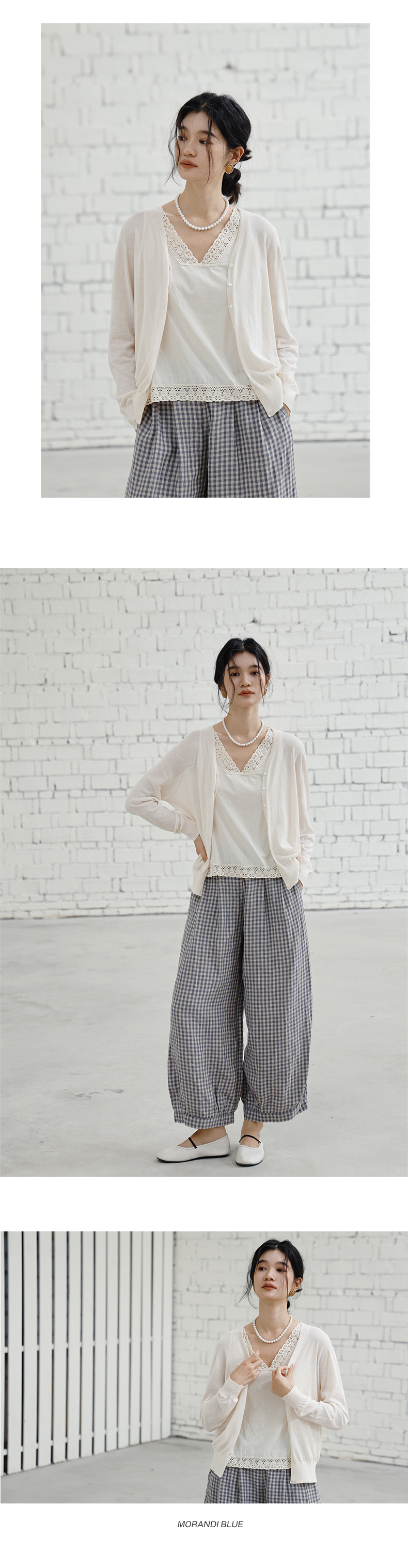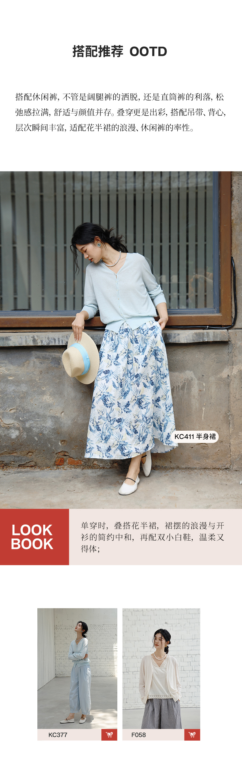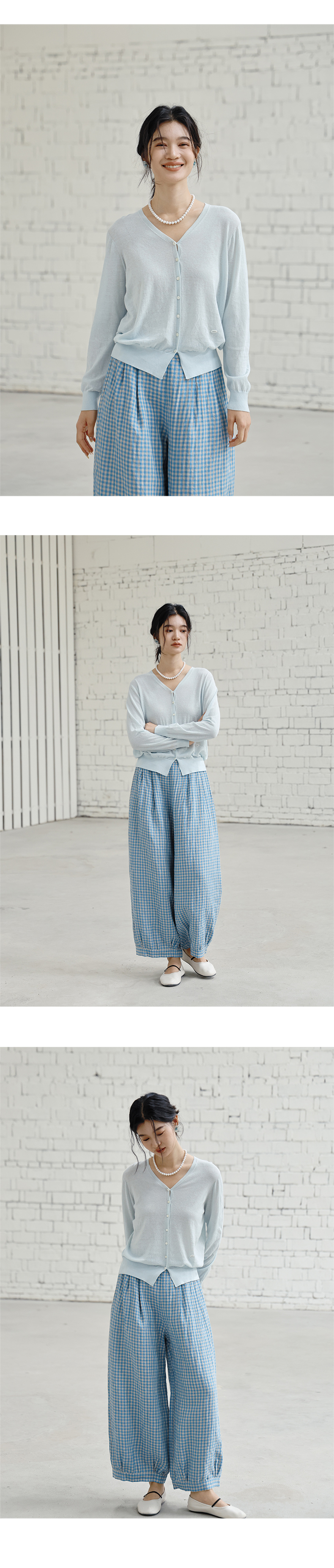 绽放女装419朵/【莫兰迪系列】超细亚麻棉混纺V领薄款长袖针织开衫