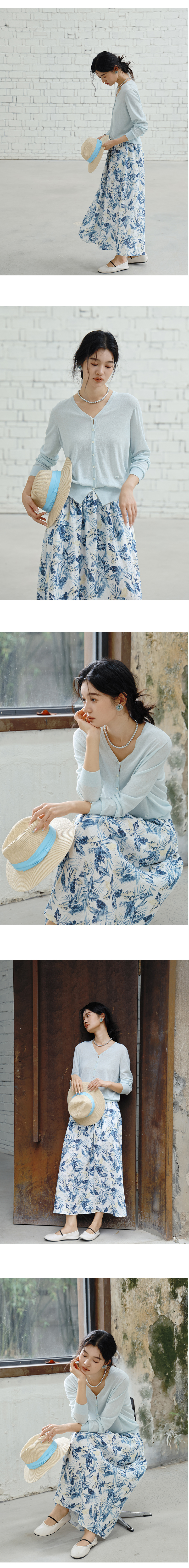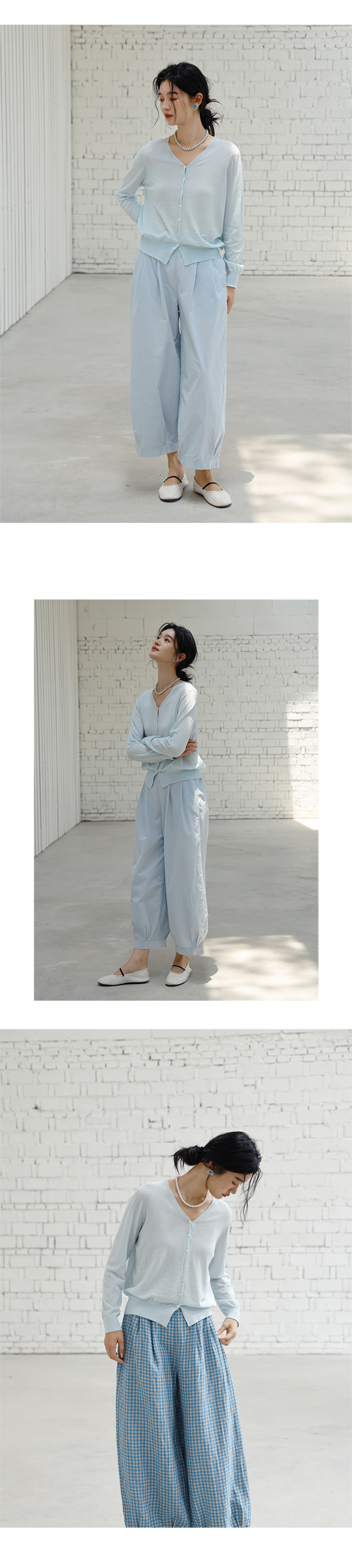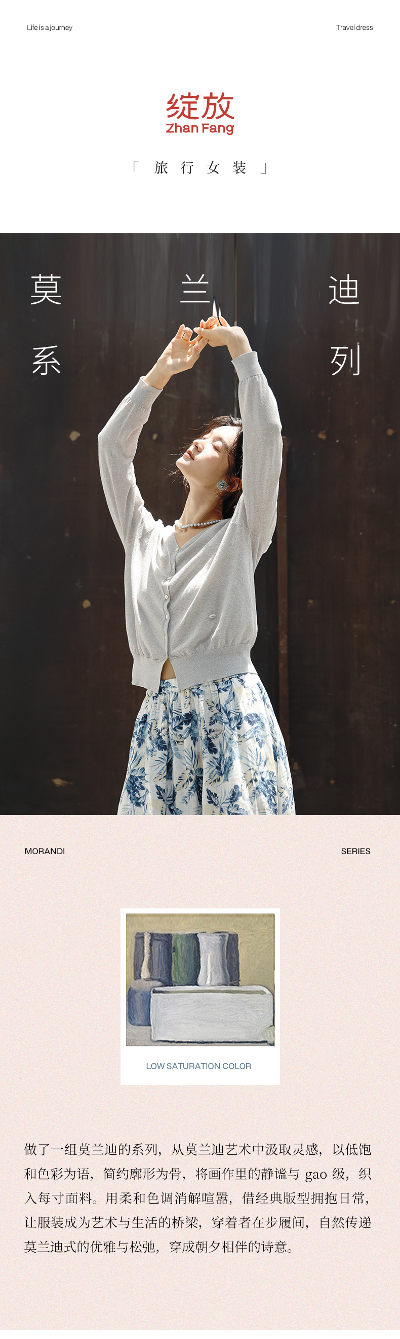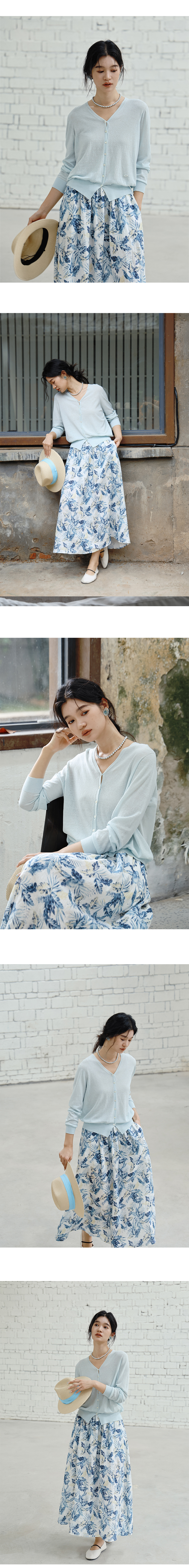 绽放女装419朵/【莫兰迪系列】超细亚麻棉混纺V领薄款长袖针织开衫