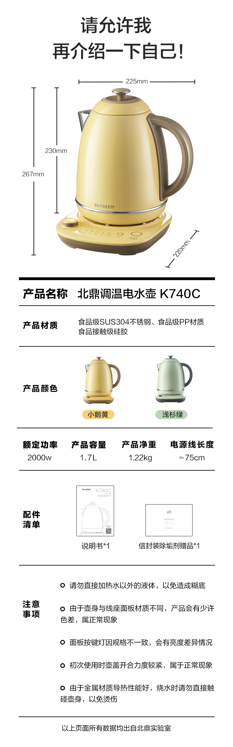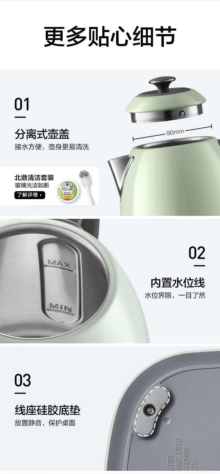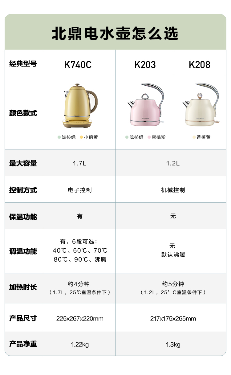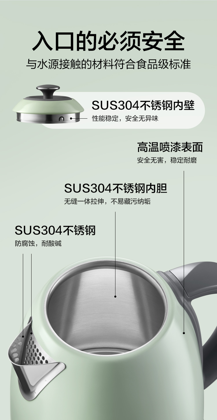 6F 北鼎K740C/002 电水壶 浅杉绿 220V/2000W