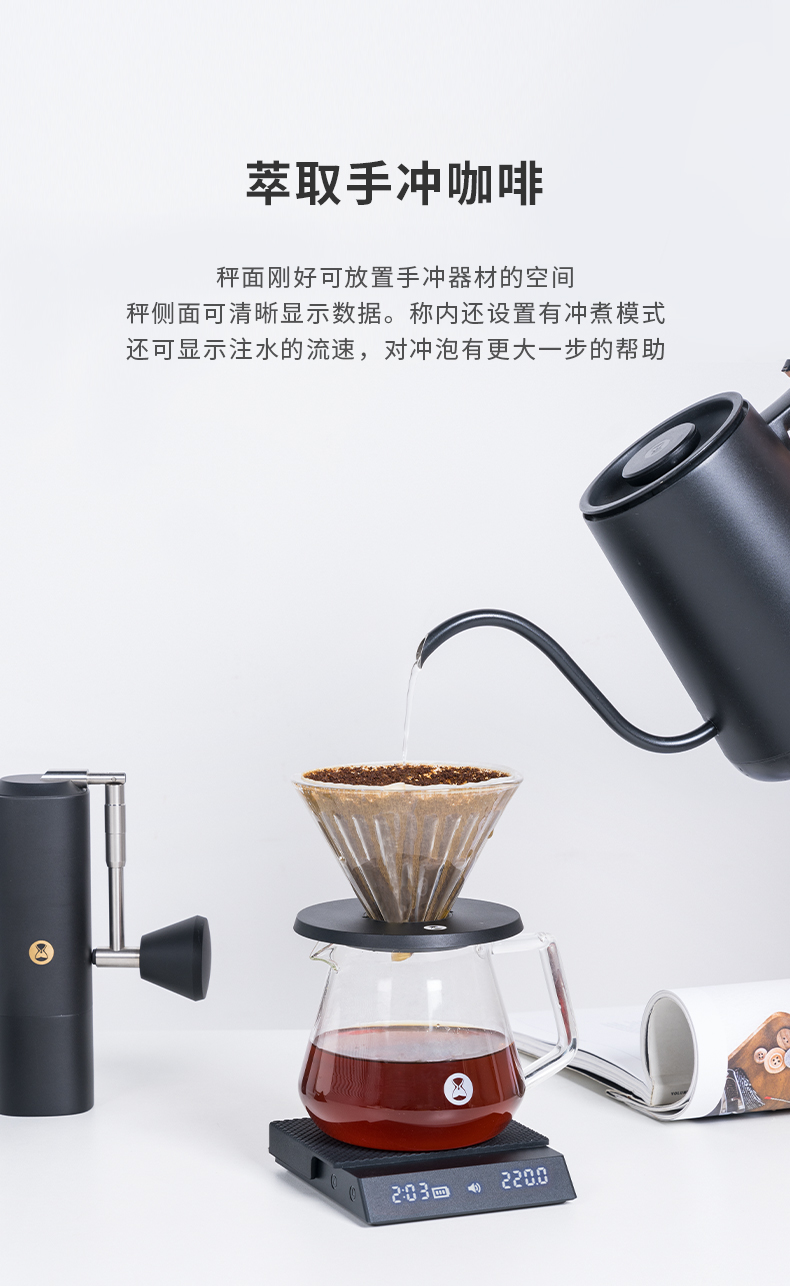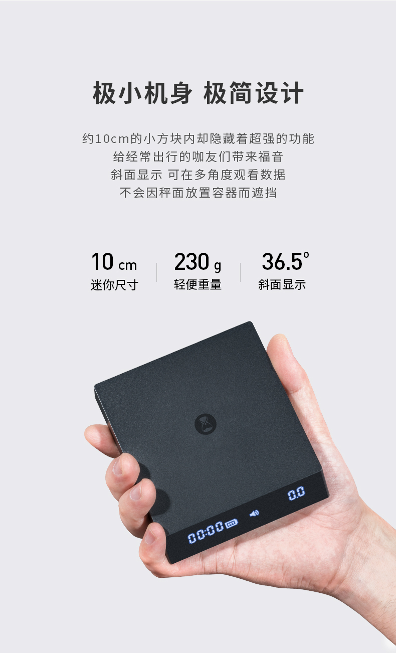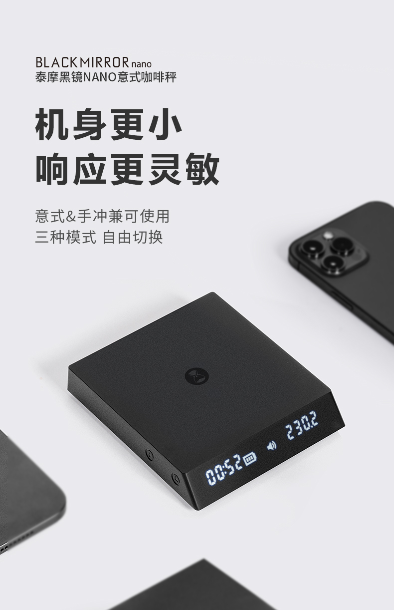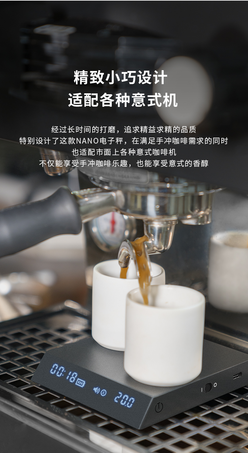 泰摩黑镜NANO意式咖啡电子秤 手冲咖啡秤 家用咖啡豆称重 计时秤