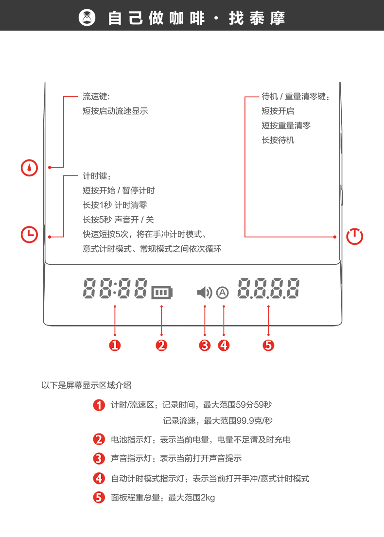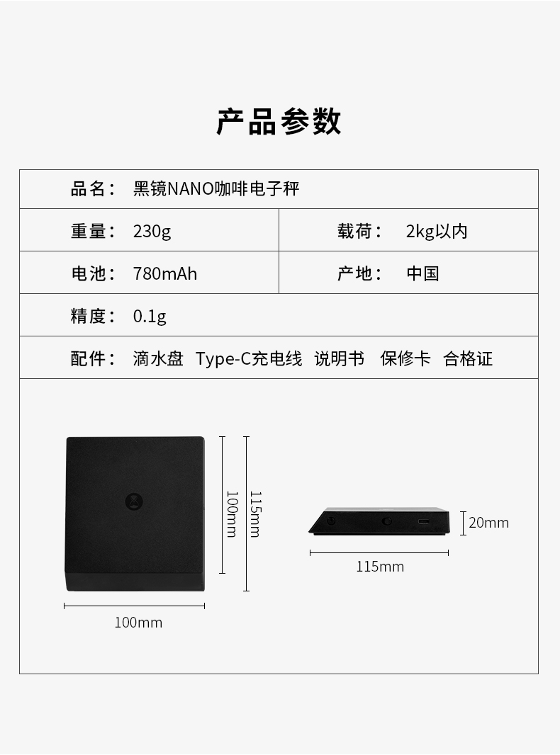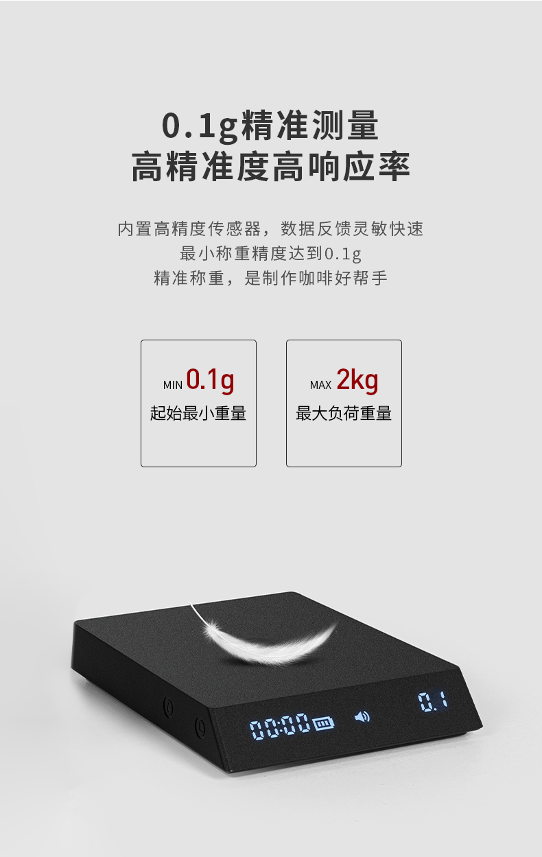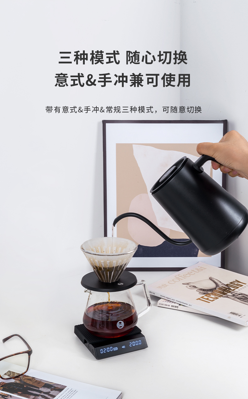 泰摩黑镜NANO意式咖啡电子秤 手冲咖啡秤 家用咖啡豆称重 计时秤