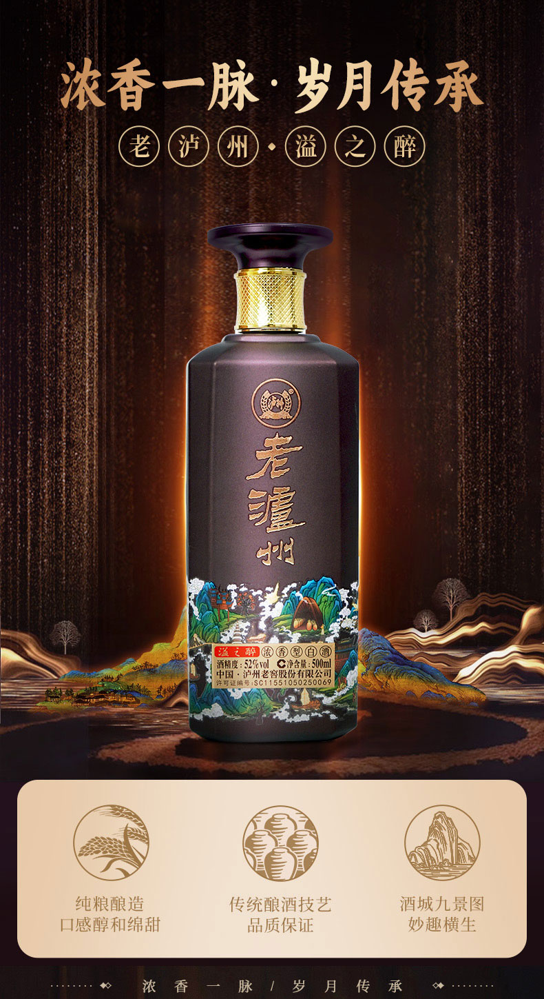 【限时秒杀】52度 老泸州溢之醉酒 500ml*6(非原箱) 泸州老窖官方旗舰店