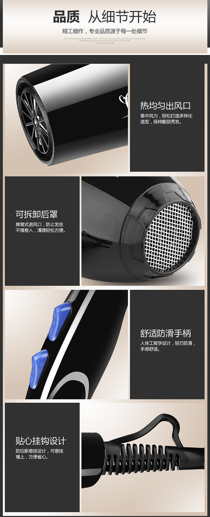 〖大功率家用电吹风〗厂家直销大功率2200W冷热风吹风机 发廊美发吹风筒