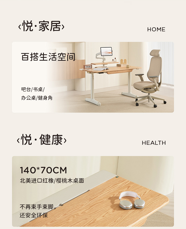 2平米【140*70厘米】悦己电动智能升降成人办公桌儿童青少年学习桌