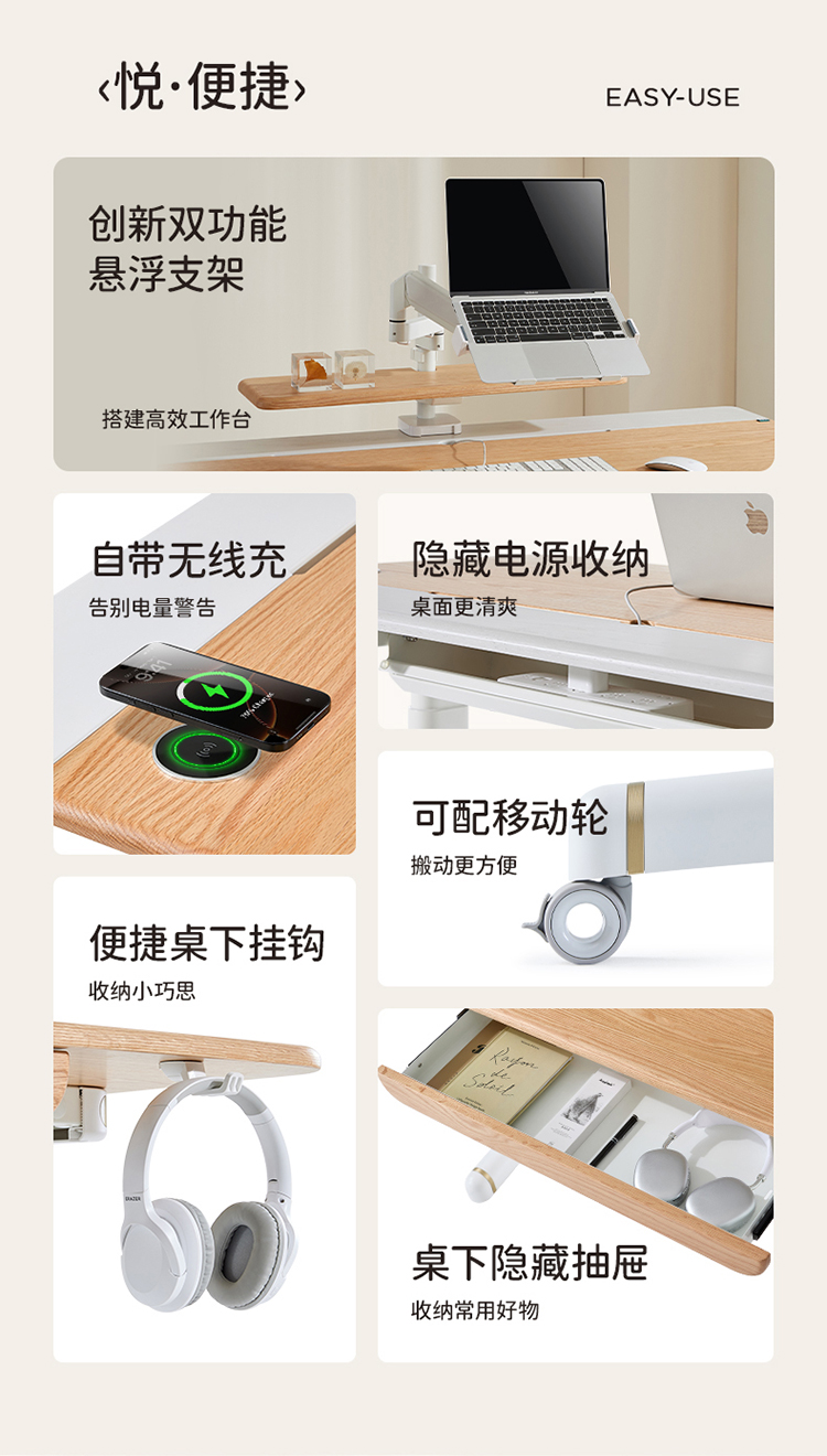 悦己桌椅套装赠品:全覆盖桌垫*1、椅套*1,万向锁止轮*1