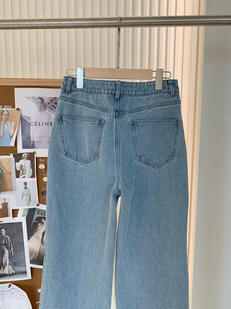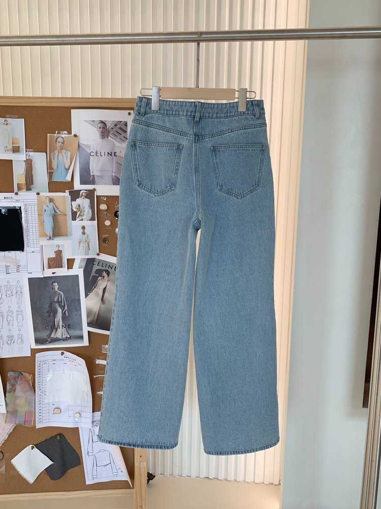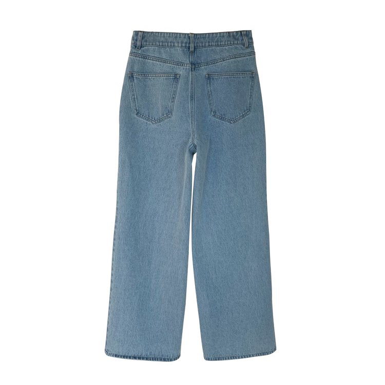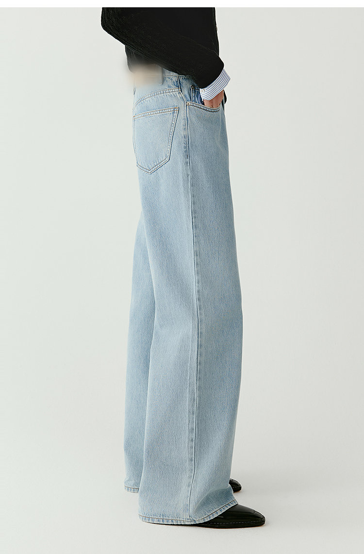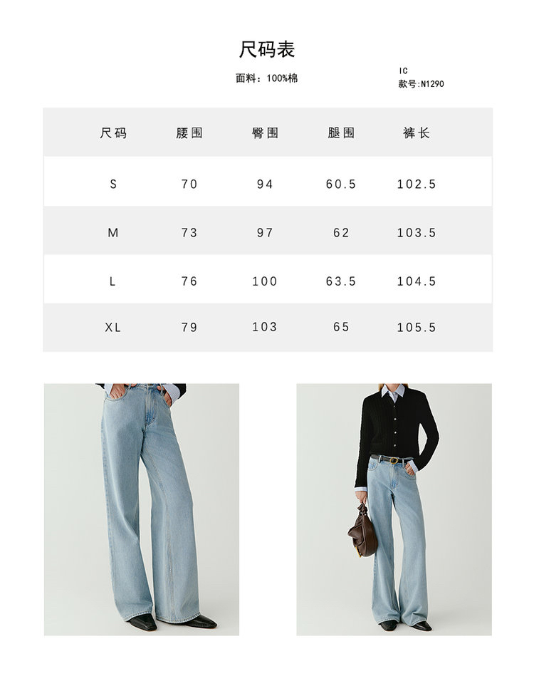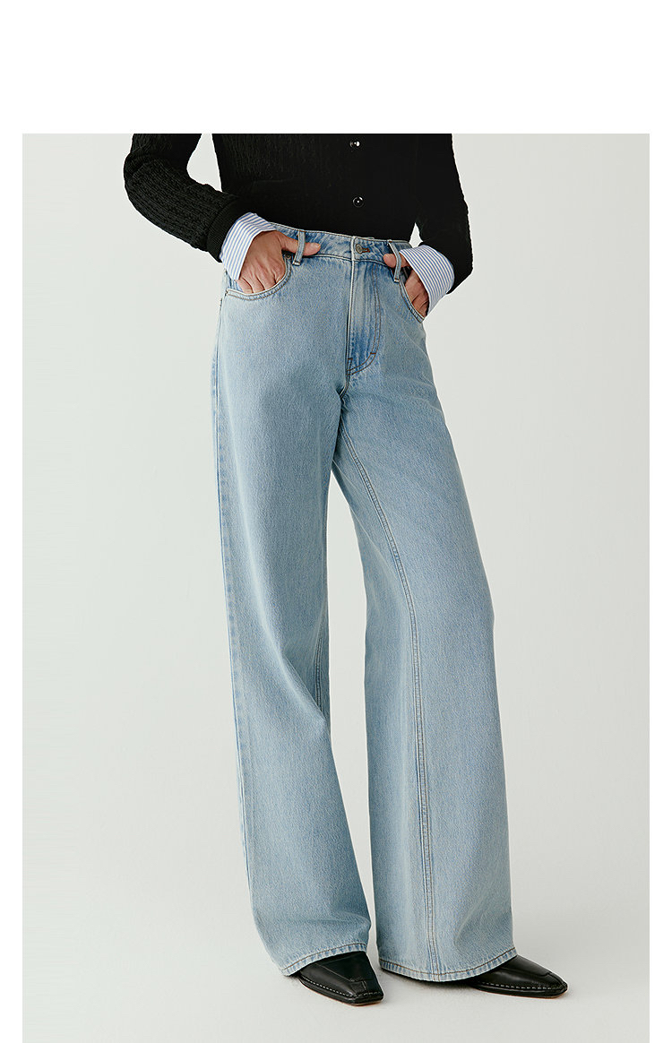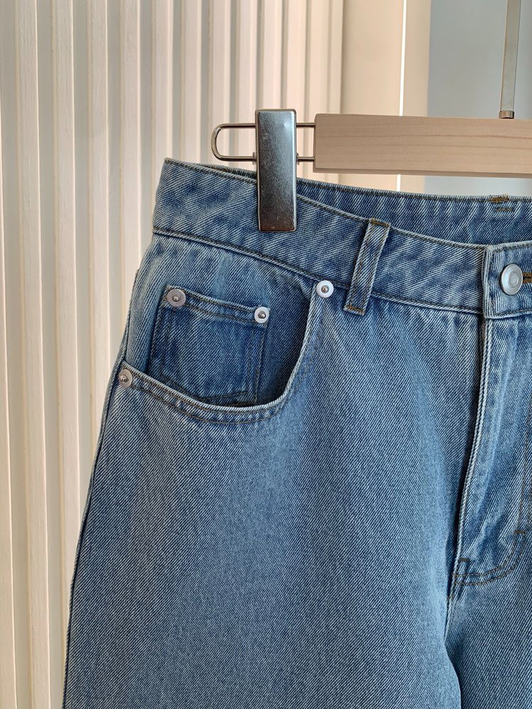 全棉牛仔阔腿长裤 经典浅蓝环保牛仔裤 意大利进口环保牛仔面料 经典畅销裤型 轻松拿捏高级氛围感 阔腿版型 显瘦显高一步到位