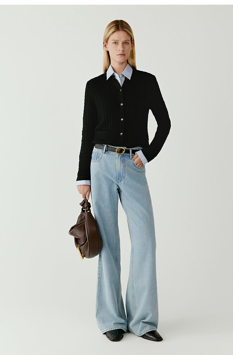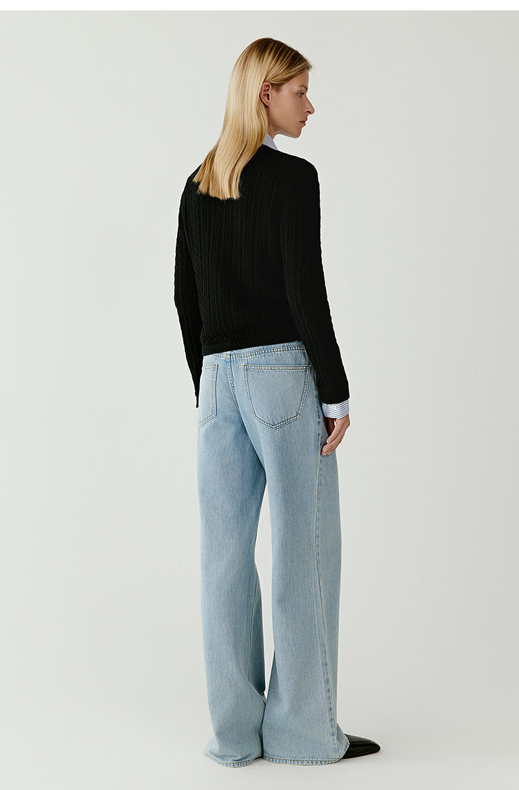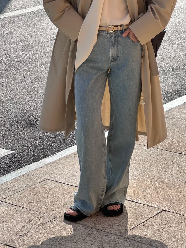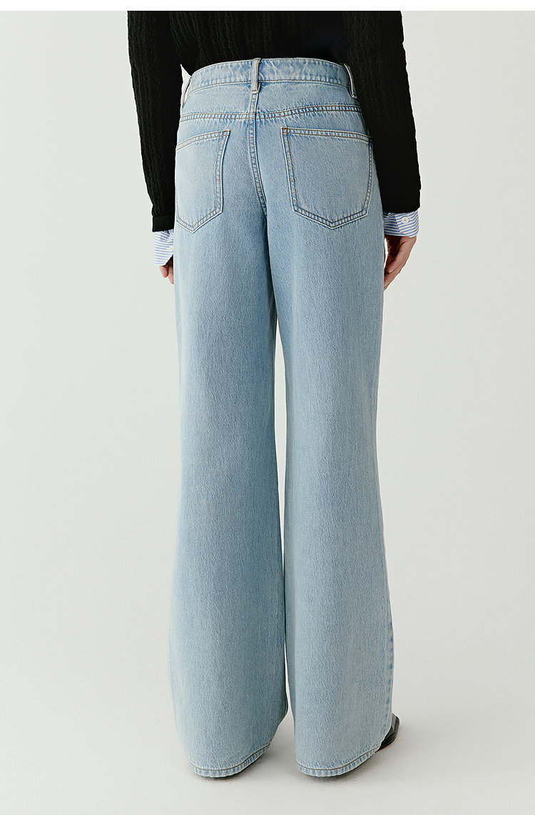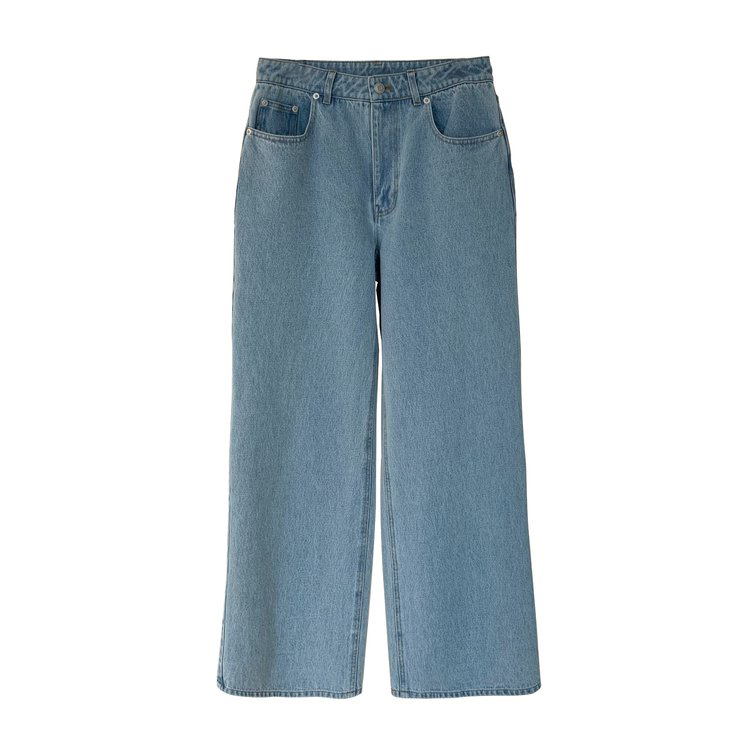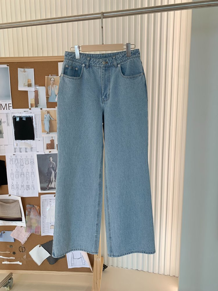全棉牛仔阔腿长裤 经典浅蓝环保牛仔裤 意大利进口环保牛仔面料 经典畅销裤型 轻松拿捏高级氛围感 阔腿版型 显瘦显高一步到位