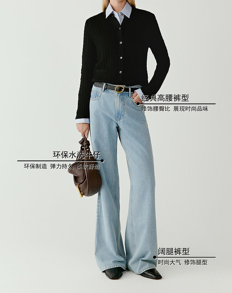 水洗蓝牛仔阔腿长裤,时尚与环保的结合之作,采用意大利进口环保牛仔面料,尽显品质与魅力。