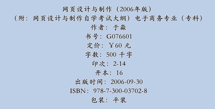 自考 网页设计与制作(2006年版) 0900(附:网页设计与制作自学考试大纲) 共两册 电子商务专业(专科)