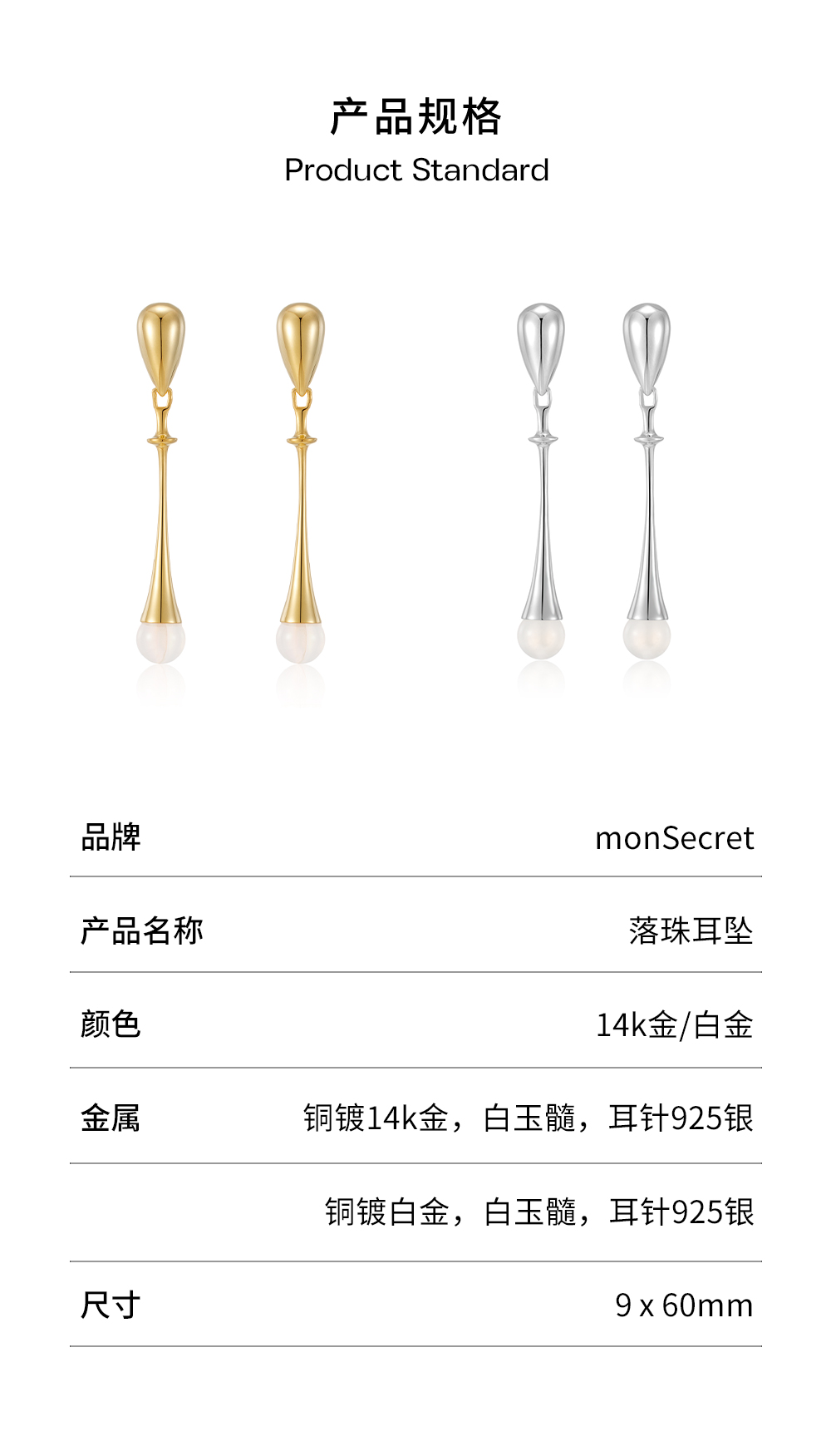 monSecret|DR0109 落珠耳坠【MOTION】 [ 银 / 金 ]