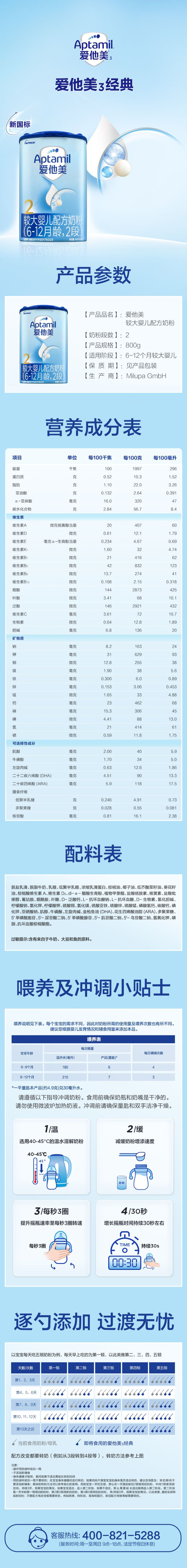 Aptamil爱他美较大婴儿配方奶粉2段800g(6-12月龄)