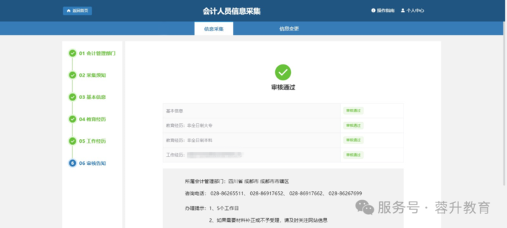 ✅ 审核通过:信息生效,可办理继续教育、职称考试等业务。