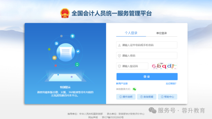 ▶️ 浏览器输入官网地址,进入全国会计人员统一服务管理平台。新用户注册