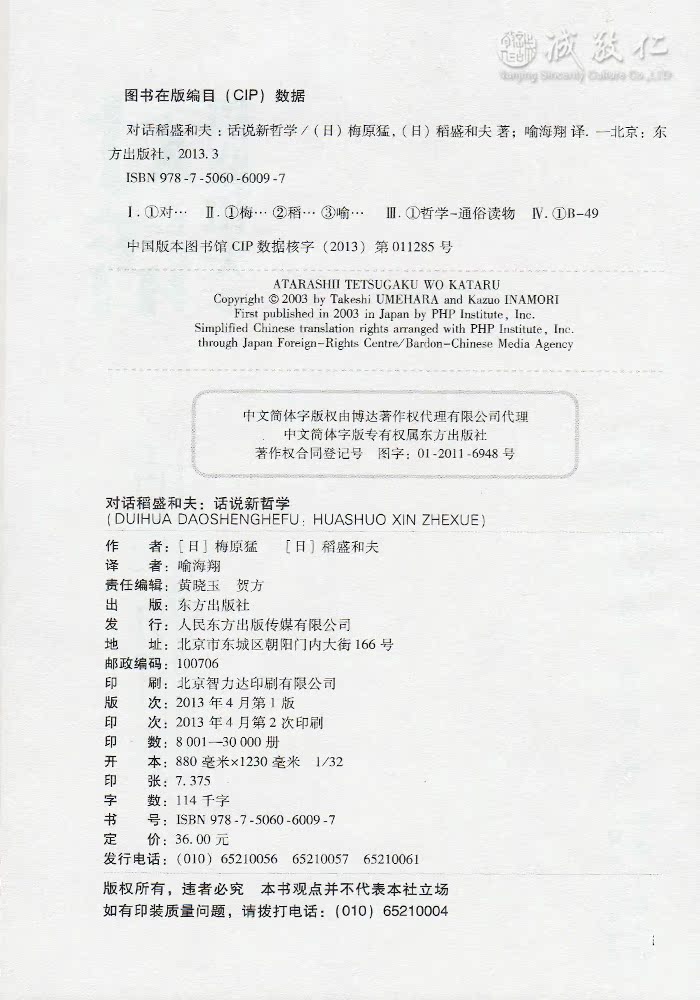 【基本信息】: 书 名: 稻盛和夫对话(四)--话说新哲学 作 者: (日)稻盛和夫 (日)梅原猛 版 次:1 装 帧:平装 开 本:1/32 页 码:217页 正文语种:中文简体 出 版 社:东方出版社 出版日期:2013年4月 ISBN 号:9787506060097 定 价:36元 售 价:27元,为您节省9元! 【作者简介】: 稻盛和夫,1932年出生于日本鹿儿岛县。1955年毕业于鹿儿岛大学工学部。1959年创办京都陶瓷株式会社(现在的京瓷公司),历任总裁,董事长,1997年起任京瓷名誉会长。1984年创办第二电电(现名KDDI,目前在日本为仅次于NTT的第二大通信公司),担任董事长一职,2001年起就任最高顾问。2010年2月接受日本政府的邀请,出任处于破产重建中的日本航空(JAL)公司的会长。日本四大“经营之圣”之一。事业成功之余,稻盛和夫在1984年创立“稻盛财团”,同年创设“京都奖”,以表彰对人类社会发展做出卓越贡献的人士。同时,他还作为为年轻企业家开办的经营研修学校“盛和塾”的塾长,为后辈的培养倾注了心血。主要著作有:《活法》、《活法贰:超级“企业人”的活法》、《活法叁:寻找你自己的人生王道》、《活法肆:开始你的明心之路》、《活法伍:成功与失败的法则》、《创造高收益壹》、《创造高收益贰:活用人才》、《创造高收益叁:实践经营问答》、《稻盛和夫的实学:阿米巴经营的基础》等。 梅原猛,1925年生于日本仙台市。哲学家。毕业于京都大学文学部哲学专业。曾经担任过立命馆大学教授、京都市立艺术大学教授及校长,东日本大震灾复兴构想会议特别顾问(名誉仪长)。1987年5月自1995年5月担任了国际日本文化研究中心第一任所长。现为京都市立艺术大学名誉教授,国际日本文化研究中心顾问。1972年获得每日出版社文化奖,1974年第一届大佛次郎奖,1992年文化功劳者奖。以日本佛教为中心研究日本人的意志。虽然是从西洋哲学出发的哲学者,以超越西田几多郎的自我目标为根基,对在西洋文明(既希腊文化和希伯来思想)中形成的西洋哲学、进步主义有着批判的态度。其根本原因是对深植于西洋哲学的人类中心主义的批判。在西洋哲学家颇多的日本哲学界中,成为极具特色的人物。 【主编推荐】: 近年来,日本政商界各类丑闻频发,批评日本社会道德水准下降的声音不绝于耳。但解构容易,建构难。一旦谈到应该如何重建道德时,却又有很多人担心会产生意识形态的对立,造成无法收场的残局,直到2005年,由日本“经营之圣”、京瓷名誉会长稻盛和夫先生和日本文化大师、著名哲学家梅原猛先生两人对谈构成的《话说新哲学》的问世,才使人对如何重建道德的路径方法有耳目一新的感觉。 本书于2005年在日本出版,到目前虽已将近10年,但却日久弥新,其所传递的理念,随着社会的发展反倒显得愈加重要。本书贯穿了从国家、社会、企业以及个人的普遍适用的哲学观。当下的中国,经济飞速发展,但是诚信的缺失,道德的滑坡,已经与辉煌的经济成就形成鲜明的对比。这样的情形,与两位哲人谈到日本二战后的情形极其相似。重建社会道德体系,是为了让我们更好地反思,“是不是我们已经走得太远,忘记了当初为什么出发。”从这个意义上来讲,这本书对于当今中国具有十分重要的现实借鉴意义。 【内容简介】: 目前日本已沦为道德沦丧和伦理缺失的社会。两位哲人以政商界为首,对社会各个阶层都进行了严厉批判。在政界,官员们只追求“自利”,为了自身利益,就像“墙头草”一样见风使舵,没有那种勇于牺牲自我,为信念殉道的坚定哲学理念;在商界,日本的经营者鼓励别人利他,自己却口是心非,不愿身体力行;在学校,老师并没有尽到传授给学生做人最低原则的义务,从而导致少年犯罪等恶性事件时有发生。而且,把眼界放宽到全球范围,类似问题也不胜枚举。美国的恐怖事件频发,以牙还牙的战争永无休止,人类无法斩断仇恨的锁链,陷入难以自拔的泥淖。 针对这些问题,两位哲人不仅仅停留在忧国和哀叹的层面,而是指出了症结所在以及提出了对国家的寄语。两位哲人一致认为,当前日本的“病根”是战后的日本人从不考虑“人为什么活着?”这一本质性问题,内心缺乏笃定如一的哲学。因此当务之急是建立一个“以哲学为基础的”社会。稻盛和夫提倡“人之道”,即重视以信仰和伦理为基础的“良心”。 梅原猛则提出应该创建新道德,即基于曾经在历史长河中塑造了日本民族灵魂的优秀宗教的佛教、儒教和神道,再借鉴基督教和伊斯兰教的智慧而创建的道德。两个人的角度虽然不同,但在本质上是殊途同归。他们呼吁,应该及早构建一个以经历漫长历史而形成的 “慈悲”、“爱”、“仁”、“自利利他”为精神基础的社会。 【目录】: 前 言-稻盛和夫 /001 第一章 哲学缺失是现代社会的悲哀 /001 小泉“结构改革”的虚幻 /003 我们必须直面“人为了什么活着”这个问题 /006 《稻盛和夫的哲学》是汲取了心学理念的实践哲学 /008 哲学能够渗透到心灵的哪一个层面才是问题的关键 /009 日本左翼人士没有一人为东欧社会主义国家的解体自杀殉道 /014 被认为说谎成性的政界 /016 政府委员会结论先行的欺瞒行为 /019 一个难以坚守自身哲学的社会 /022 日本纯文学缺少对人性“善”与“庄严”的描写 /023 对人鼓吹利他,自己却不愿身体力行的日本经营者 /027 只为“自私自利”所驱动的政治家们 /029 领导者们公然