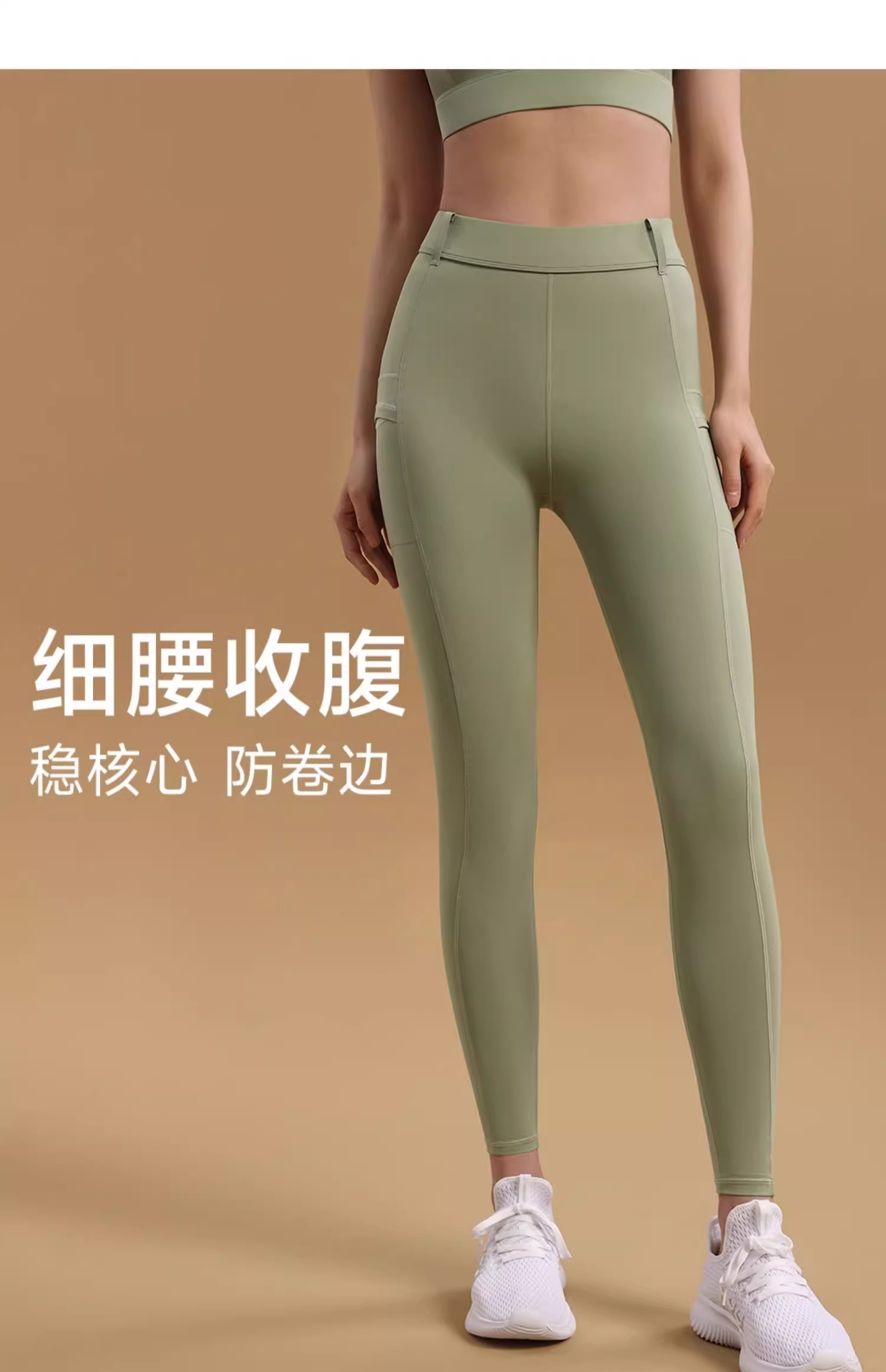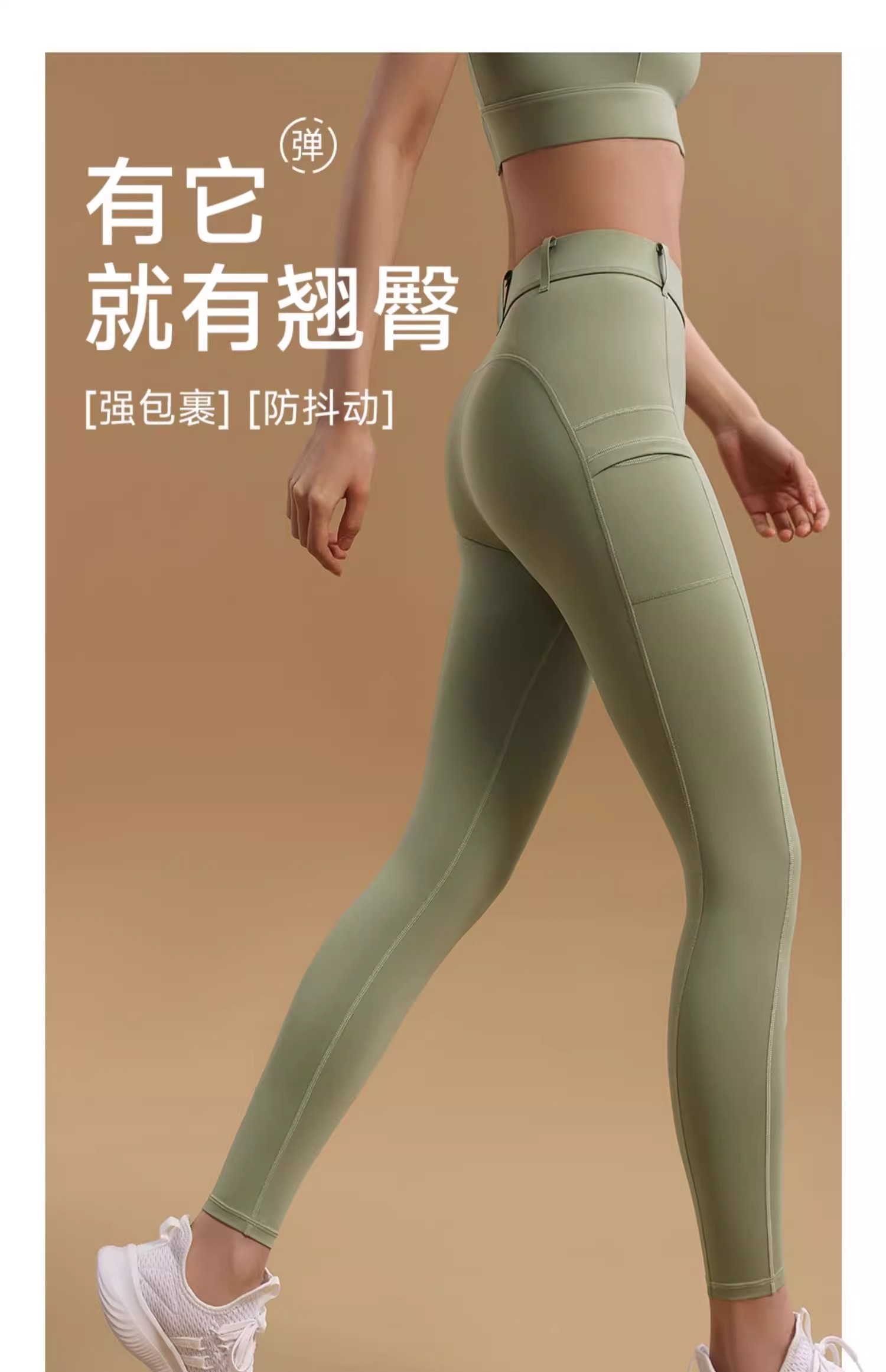 跃牌【瑜堂系列】机车裤无缝高腰提臀显瘦侧口袋防卷边高弹裸感瑜伽裤JYJK007