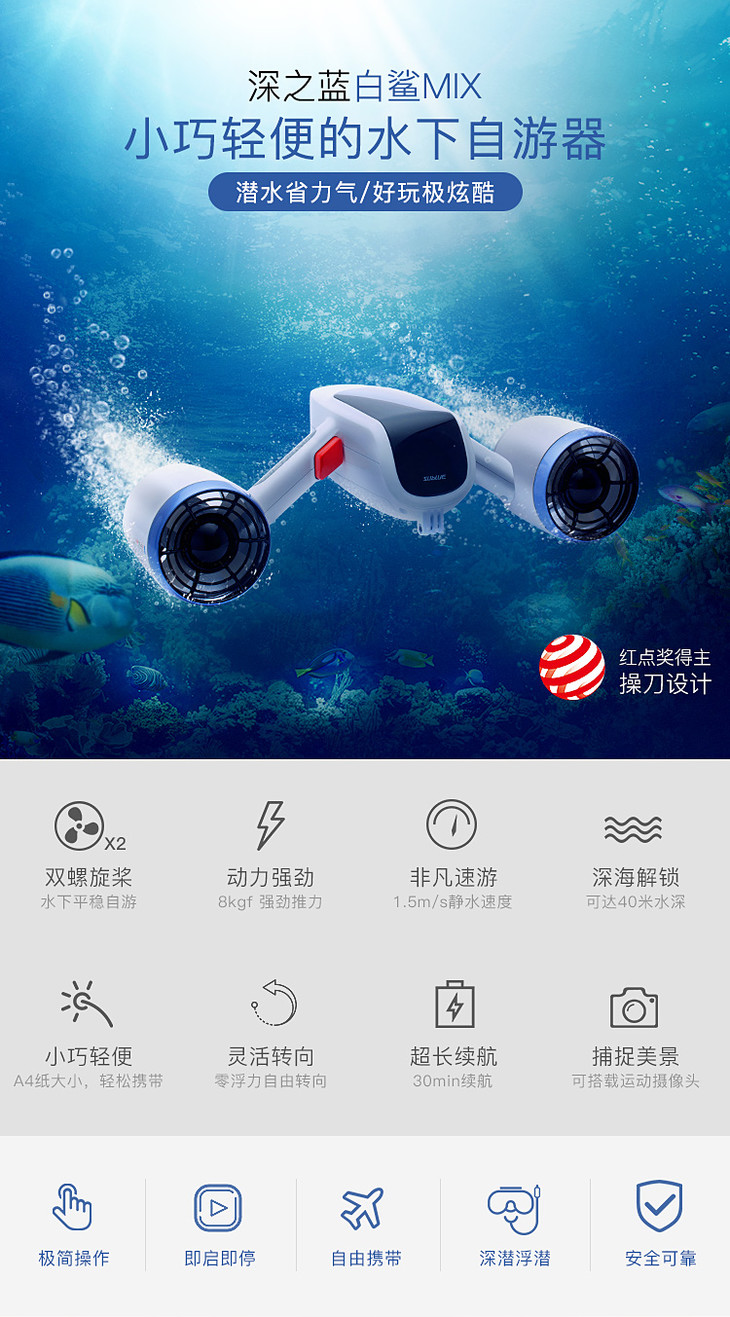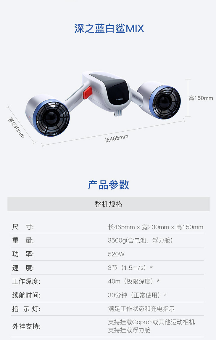 【装备】Sublue深之蓝白鲨MIX水下无人机器人自游器潜水助力器浮潜推进器