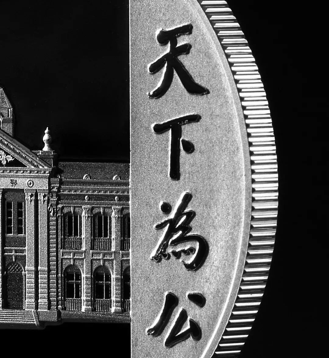 币面右侧写着大大的“天下为公”字样,为当年孙中山先生手书。取自孔子的“大道之行也,天下为公”。