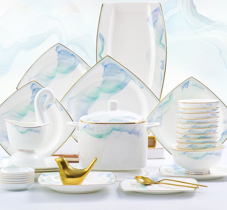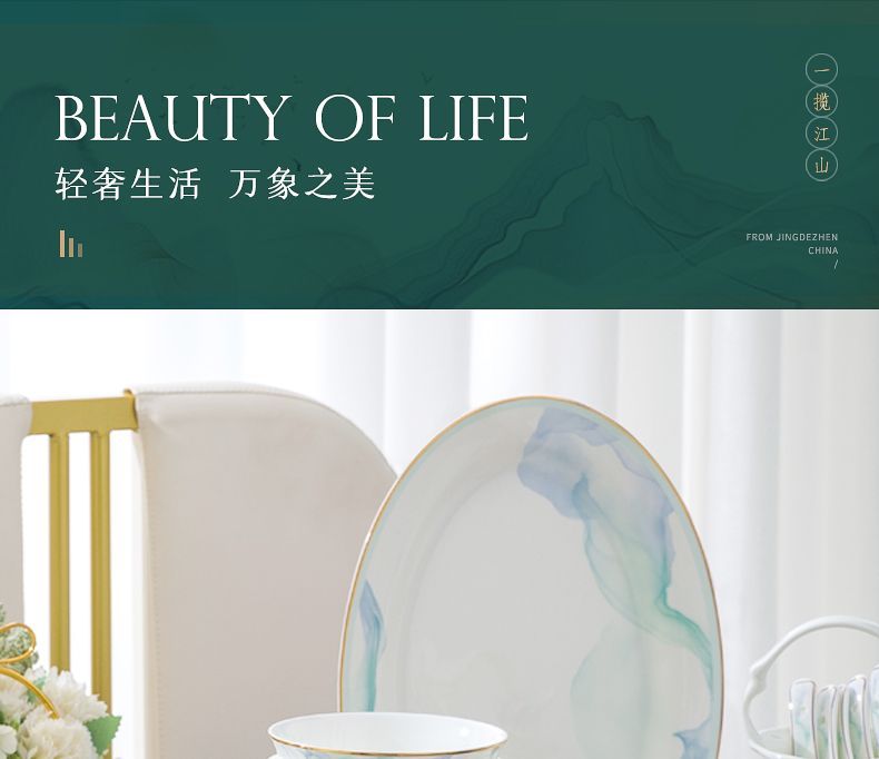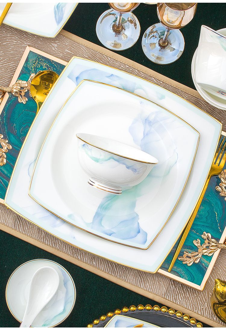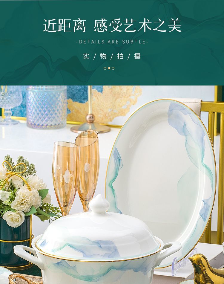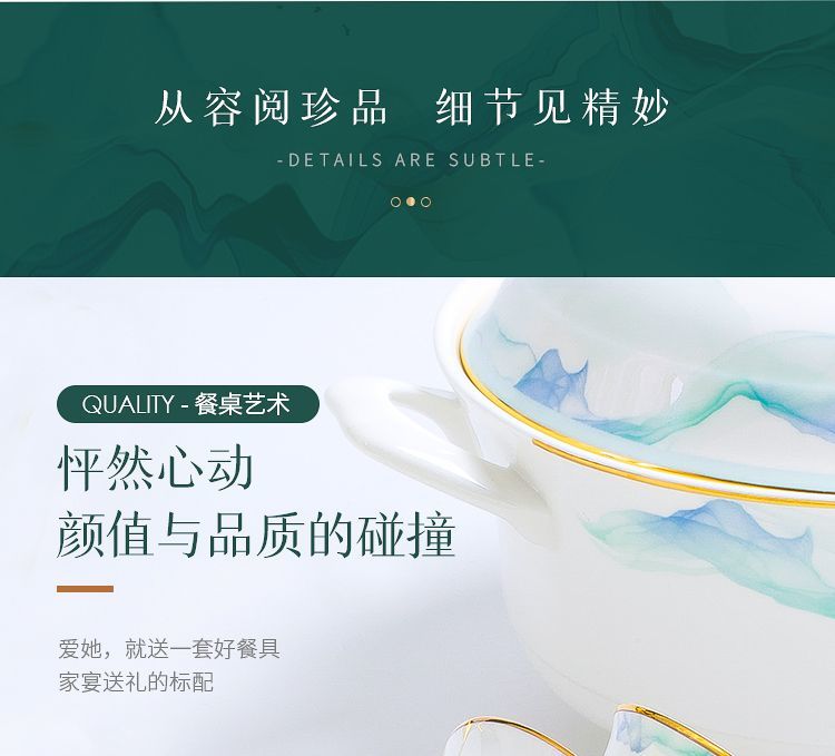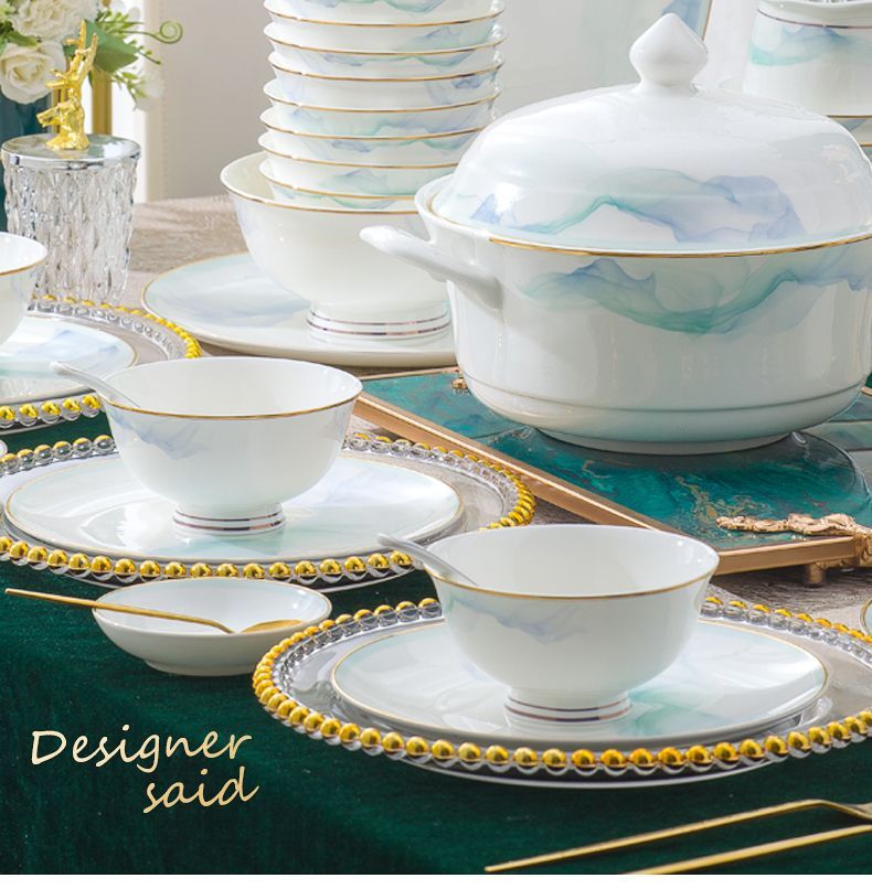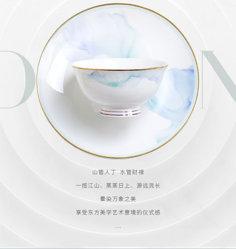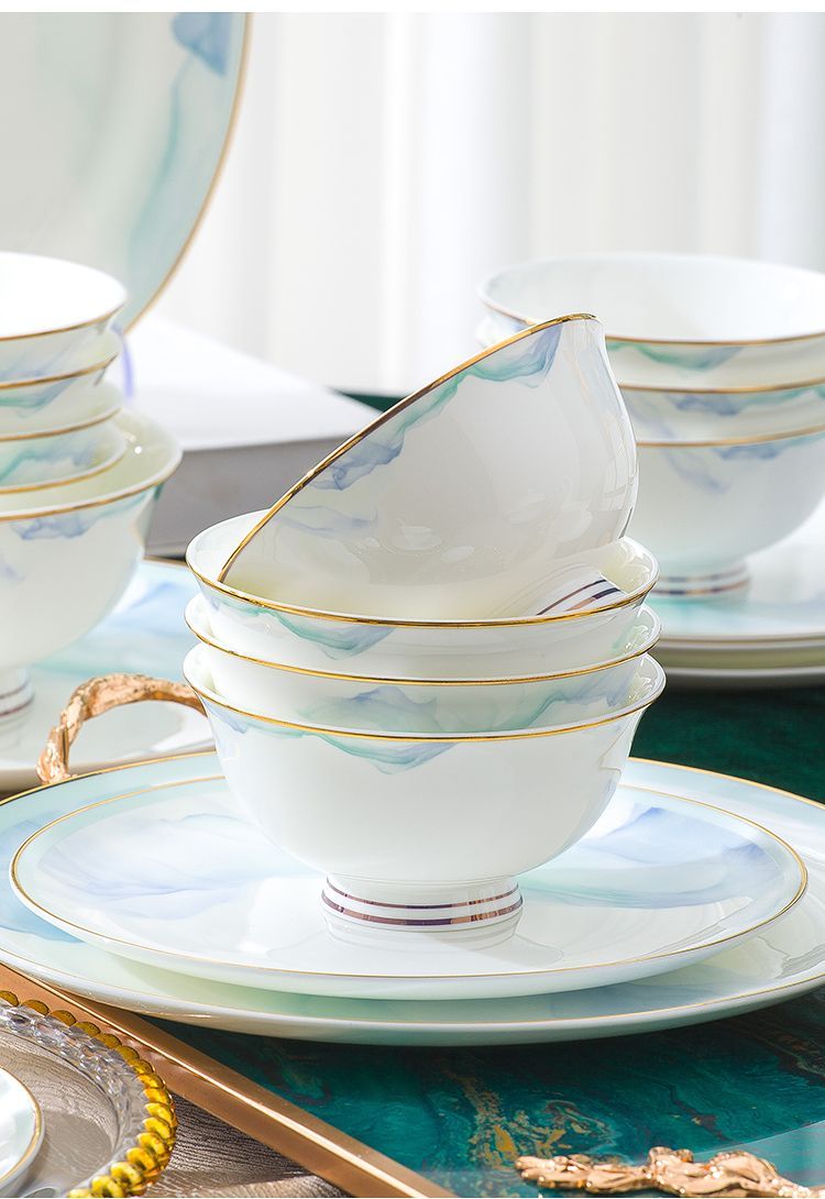 景德镇陶瓷骨瓷餐具家用碗盘碗碟金边饭碗汤碗简约轻奢创意搭配