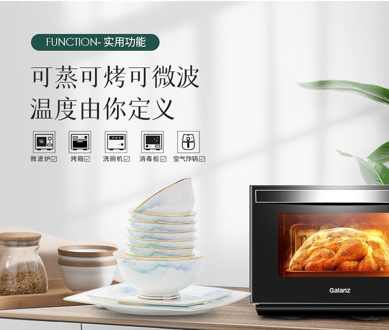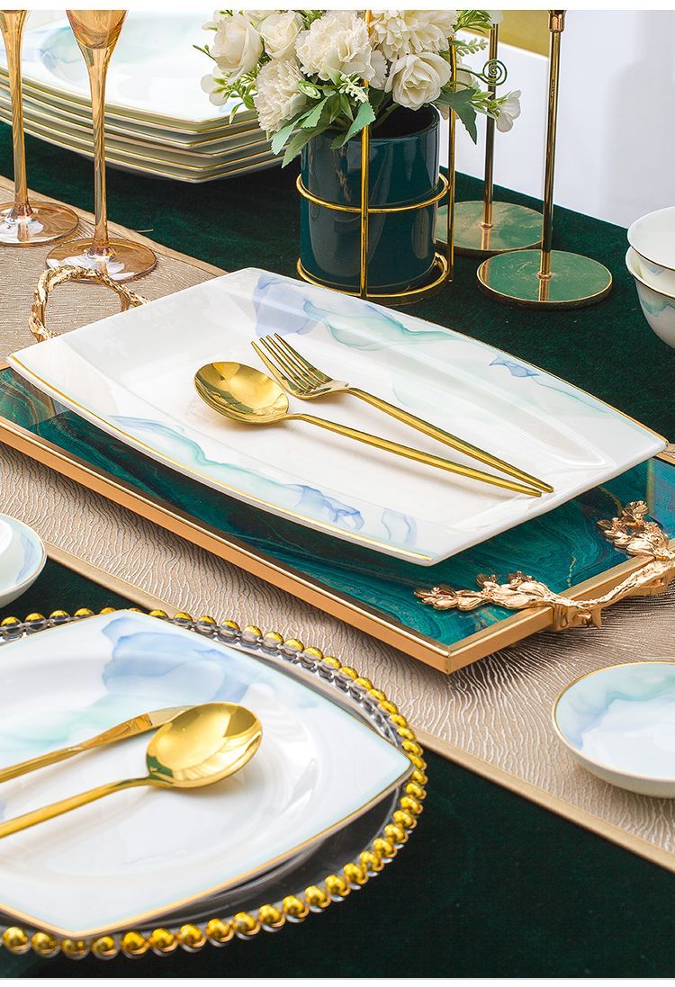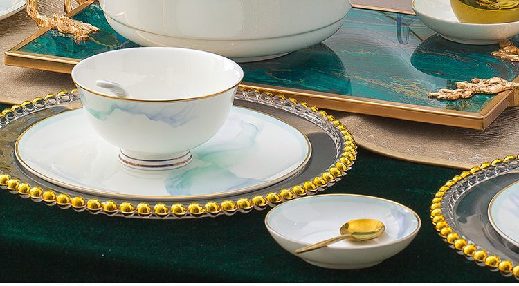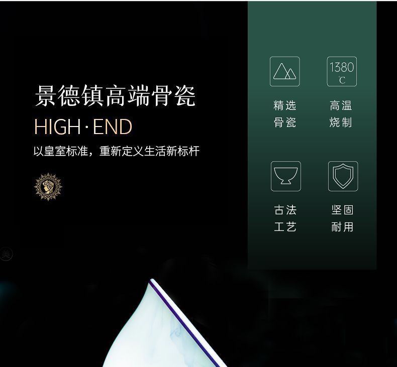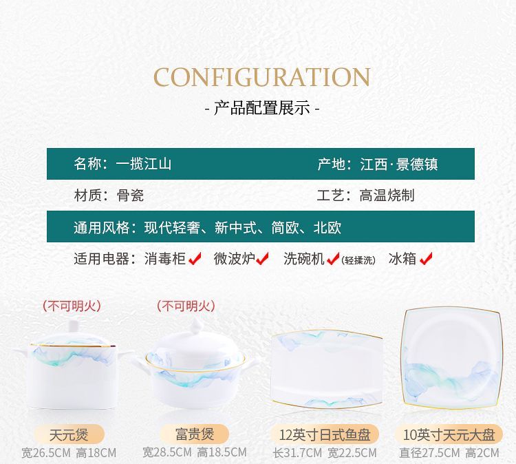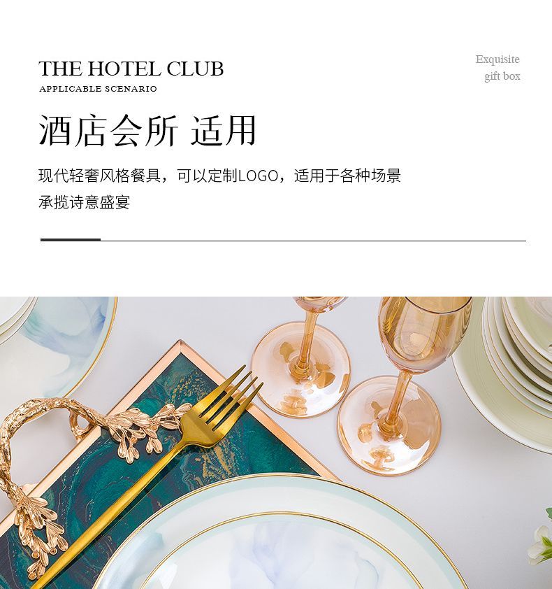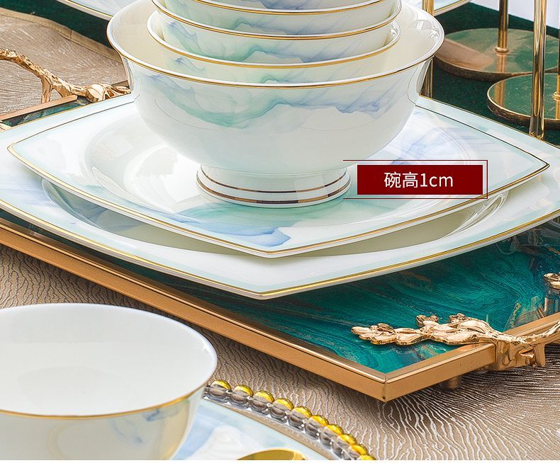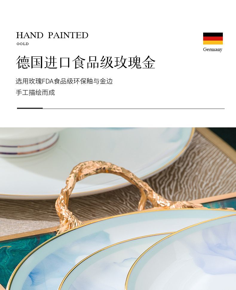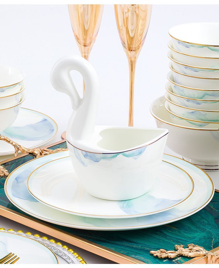 景德镇陶瓷骨瓷餐具家用碗盘碗碟金边饭碗汤碗简约轻奢创意搭配