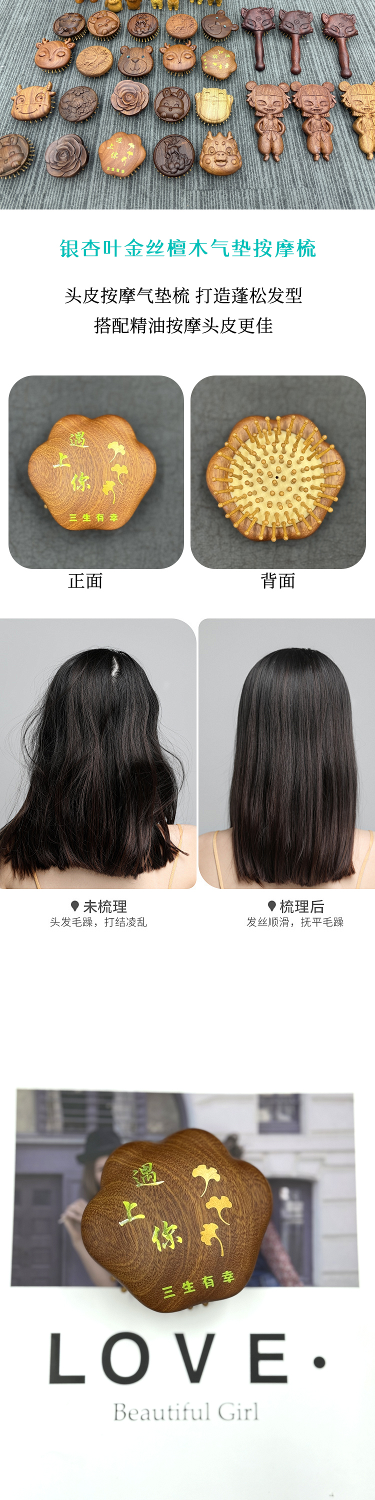 平衡小柅 银杏叶金丝檀木气垫按摩梳 气囊梳 按摩头皮经络 顺发