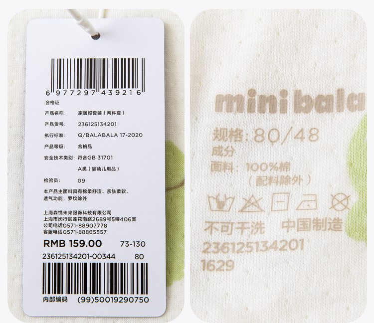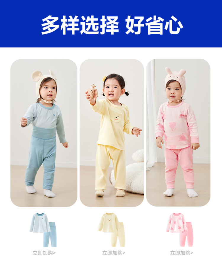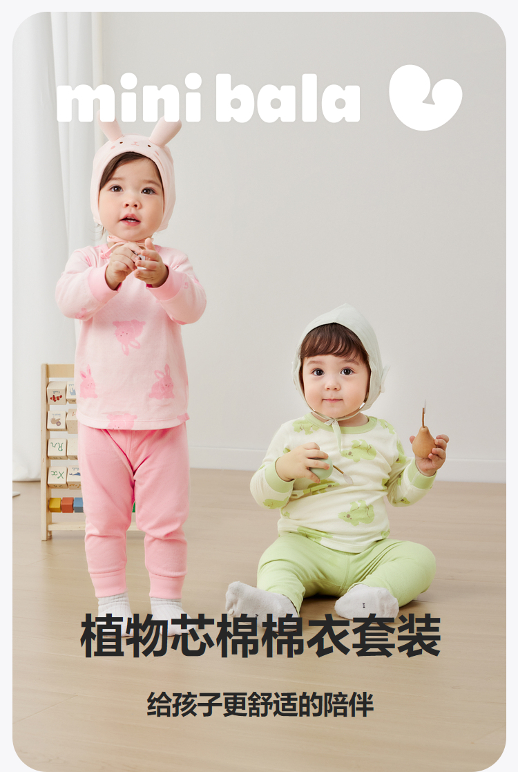 【植物芯】迷你巴拉儿童全棉打底睡衣套装宝宝亲肤柔软家居服