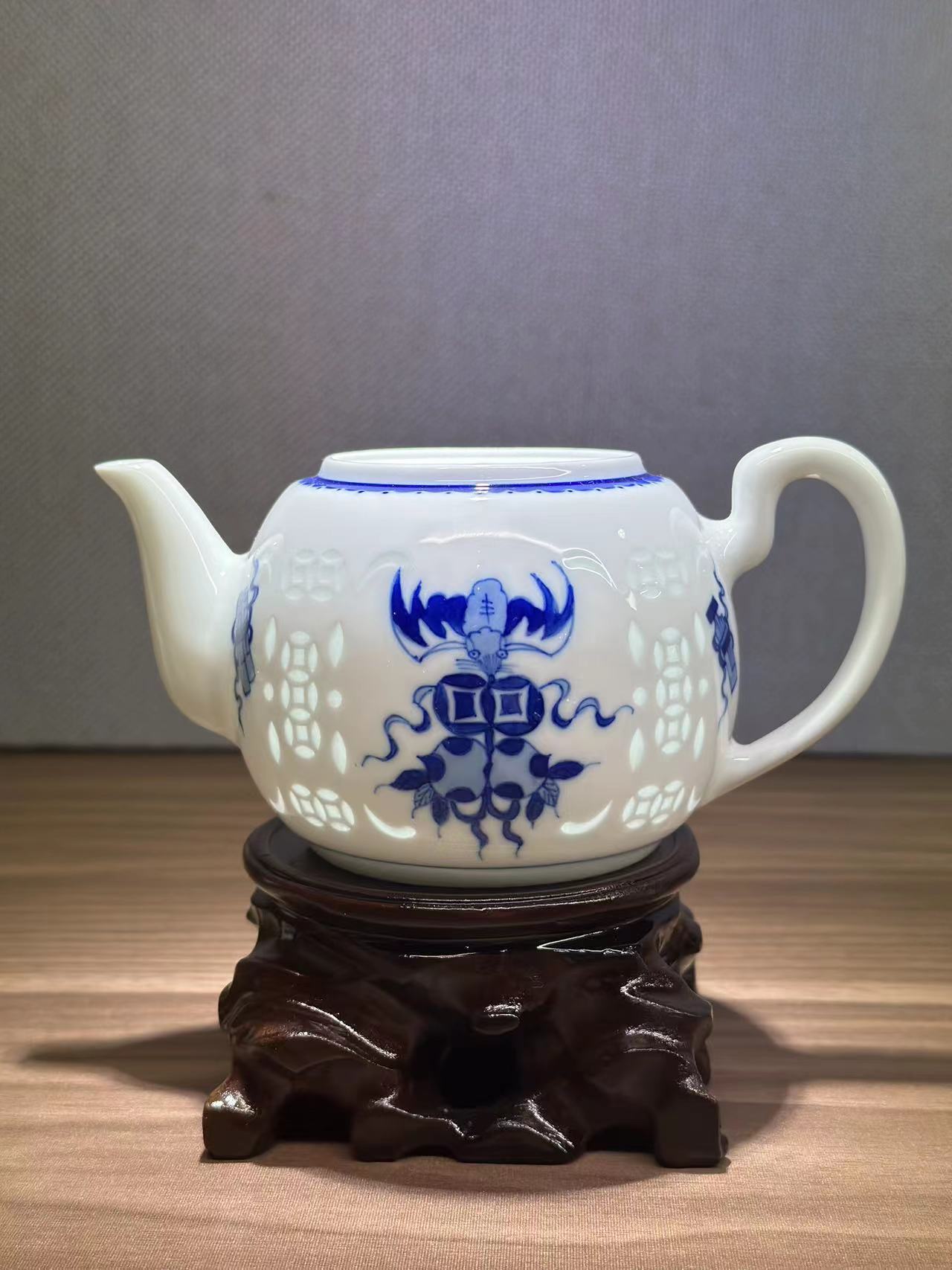 景德镇陶瓷 国瓷红叶 7头手绘青花茶具(牡丹花)