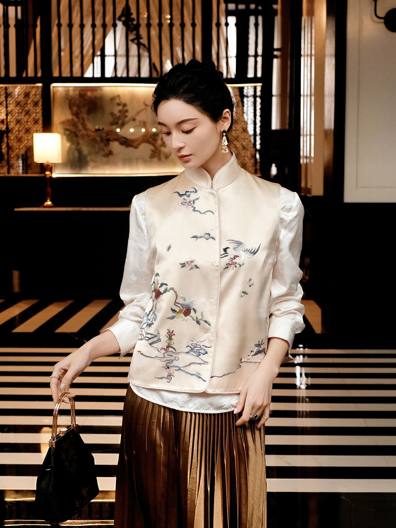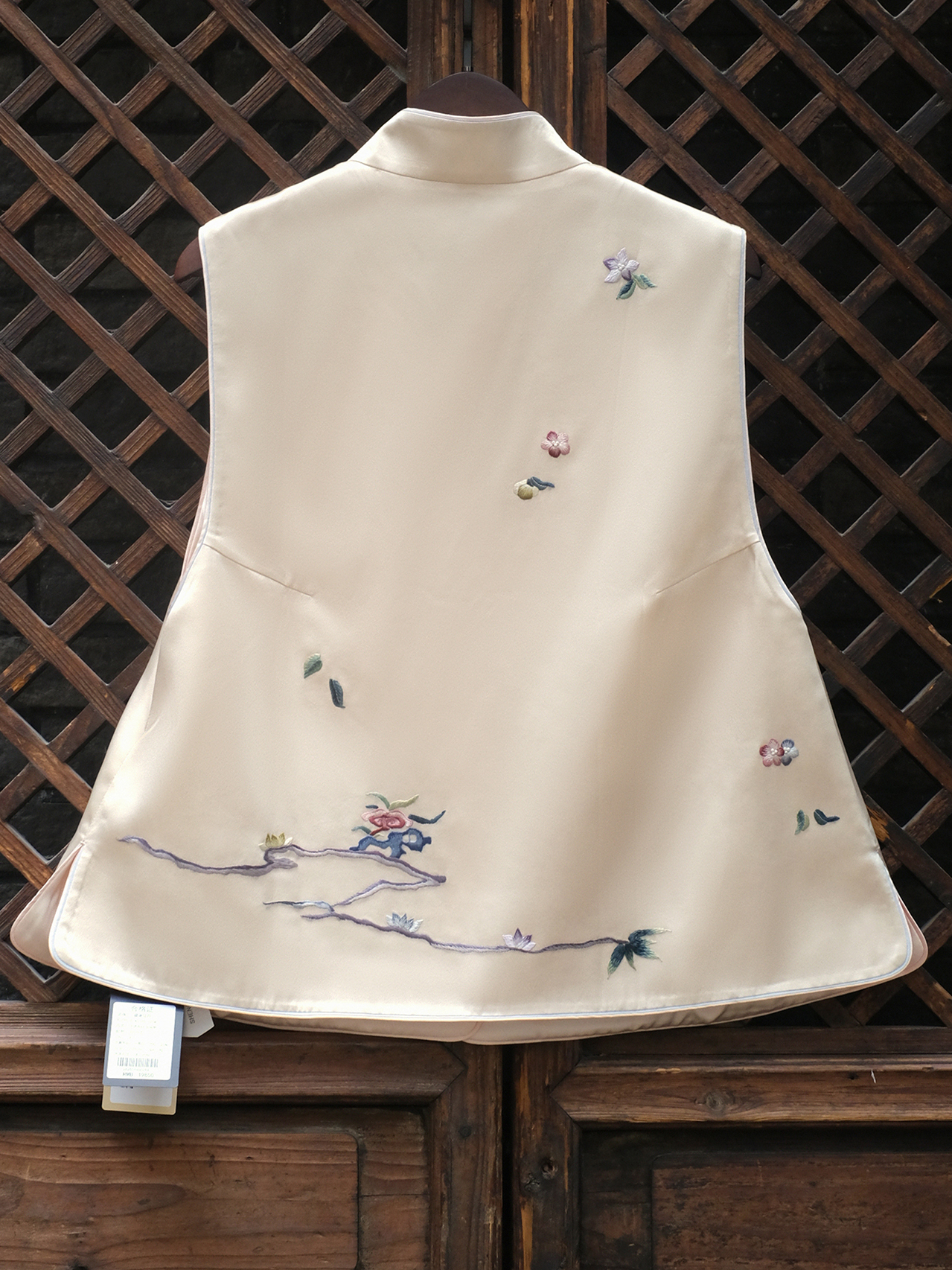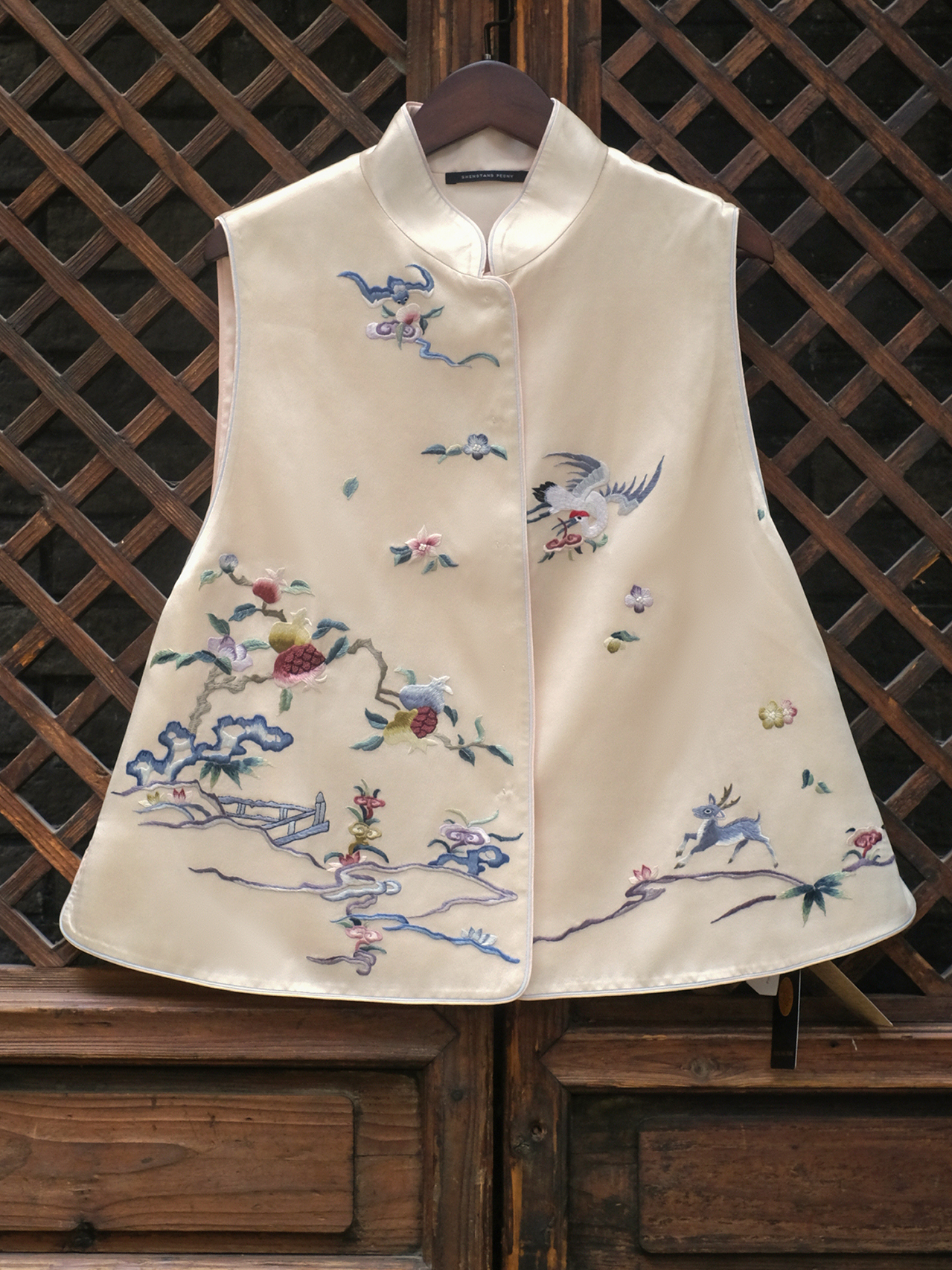 盛唐牡丹大师系列-王小潇 | 重缎真丝手绣对襟马甲(盛唐牡丹与非遗传承人王小潇联名系列)