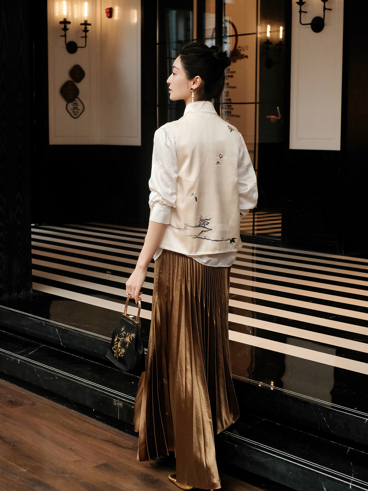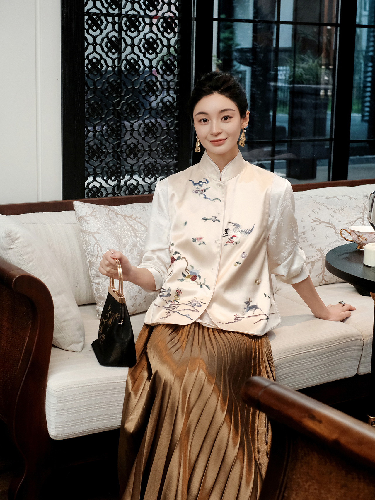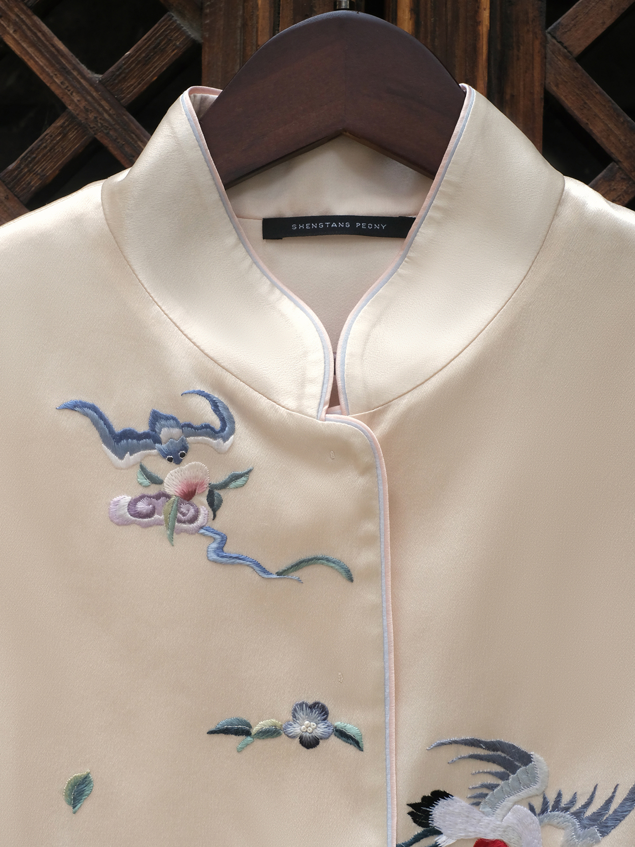 盛唐牡丹大师系列-王小潇 | 重缎真丝手绣对襟马甲(盛唐牡丹与非遗传承人王小潇联名系列)