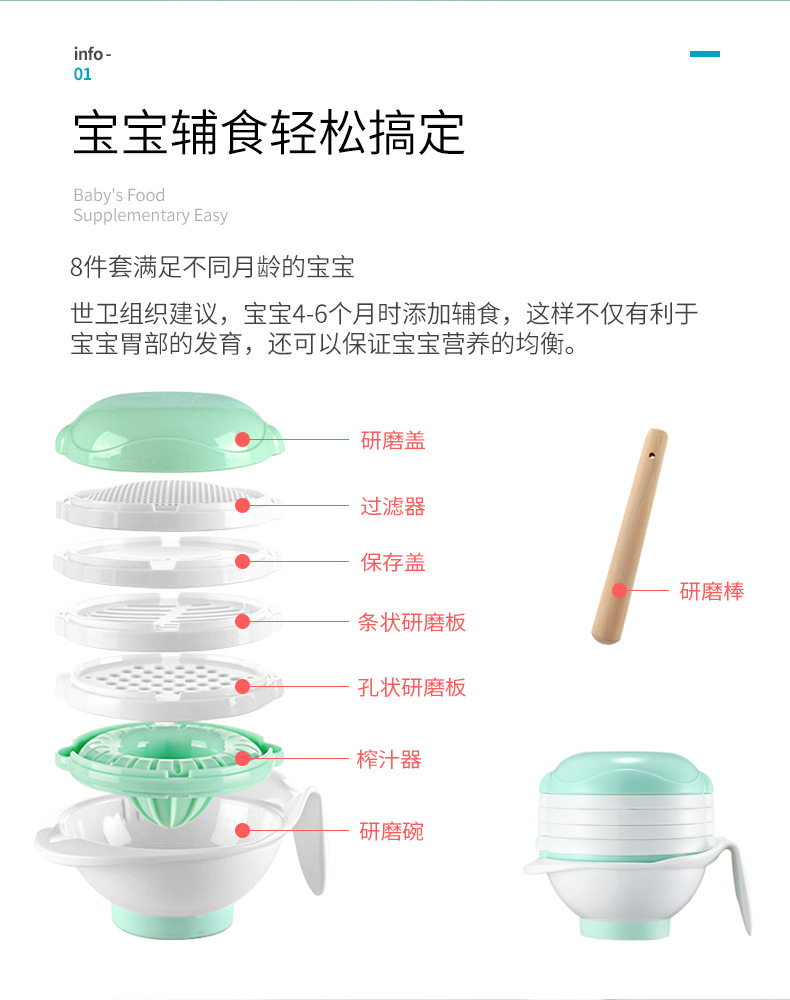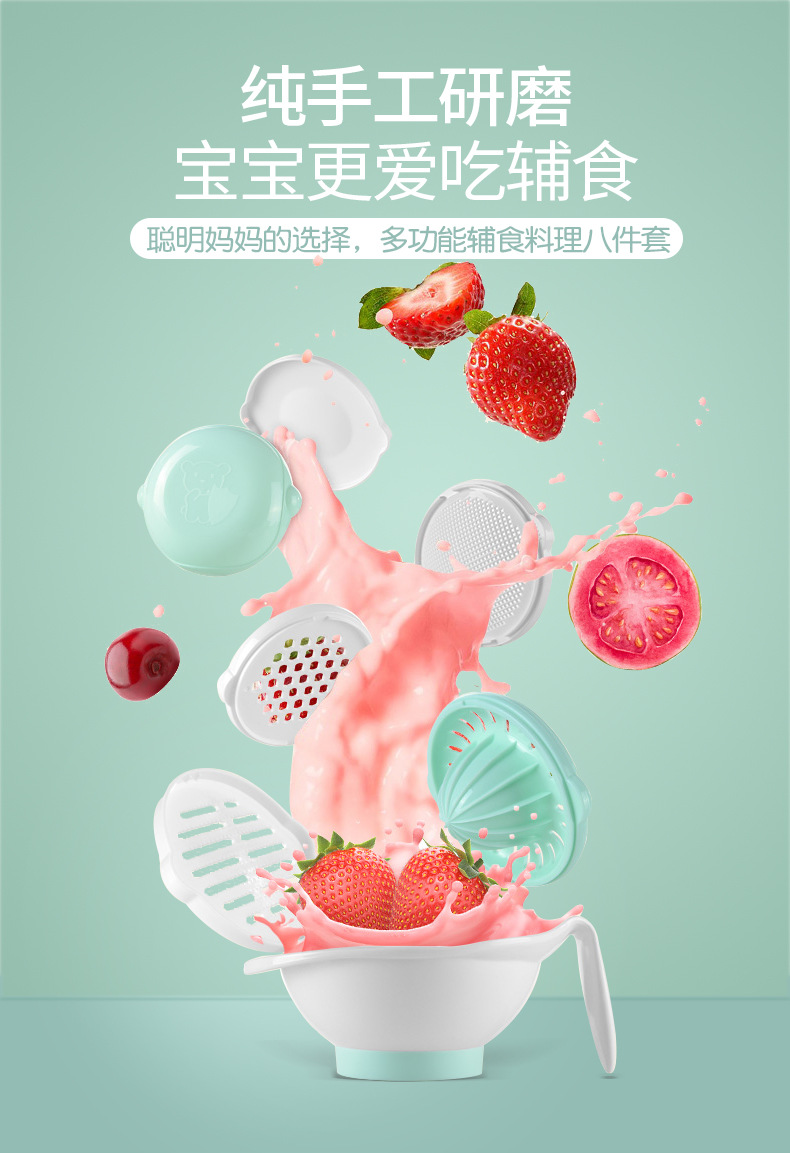 【宝宝用品】*宝宝辅食研磨碗套装 手动食物研磨器儿童