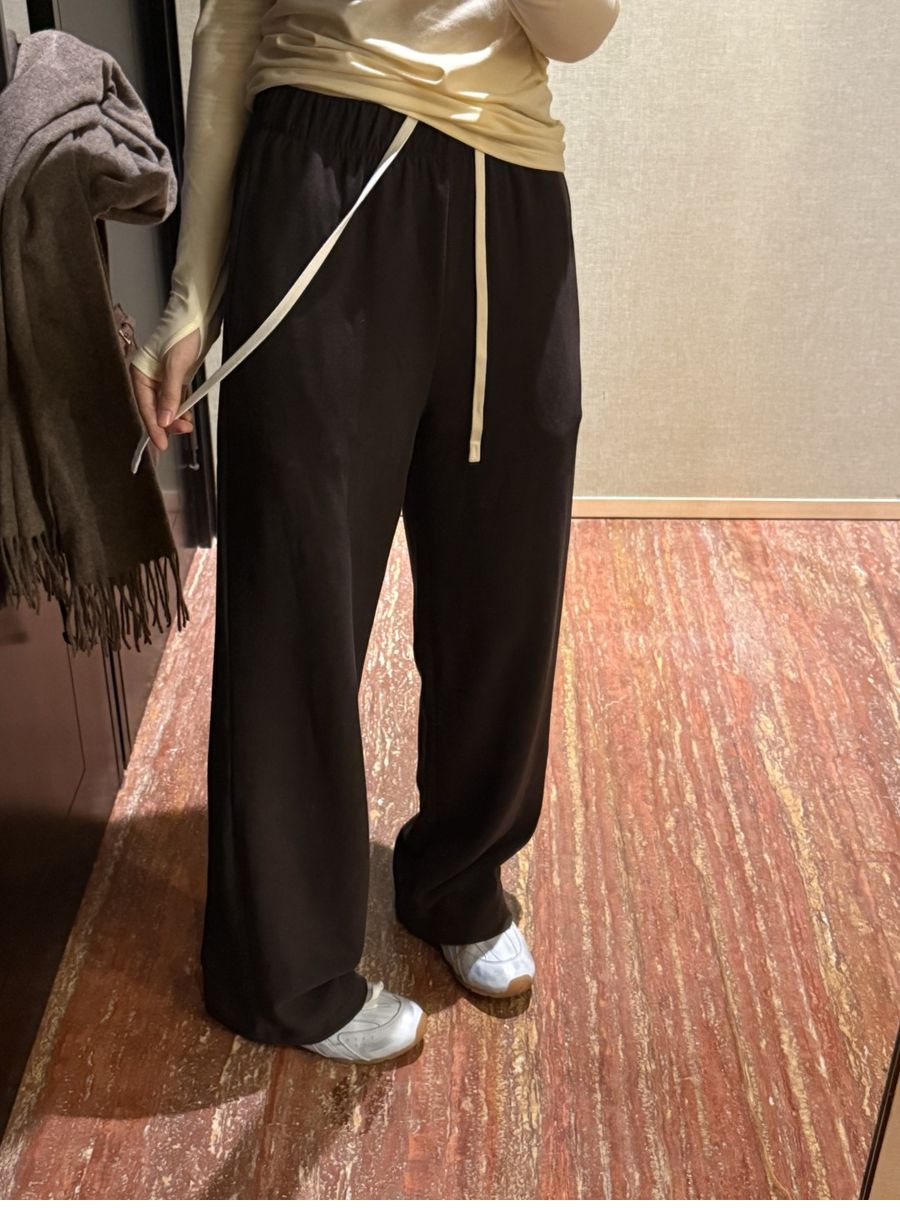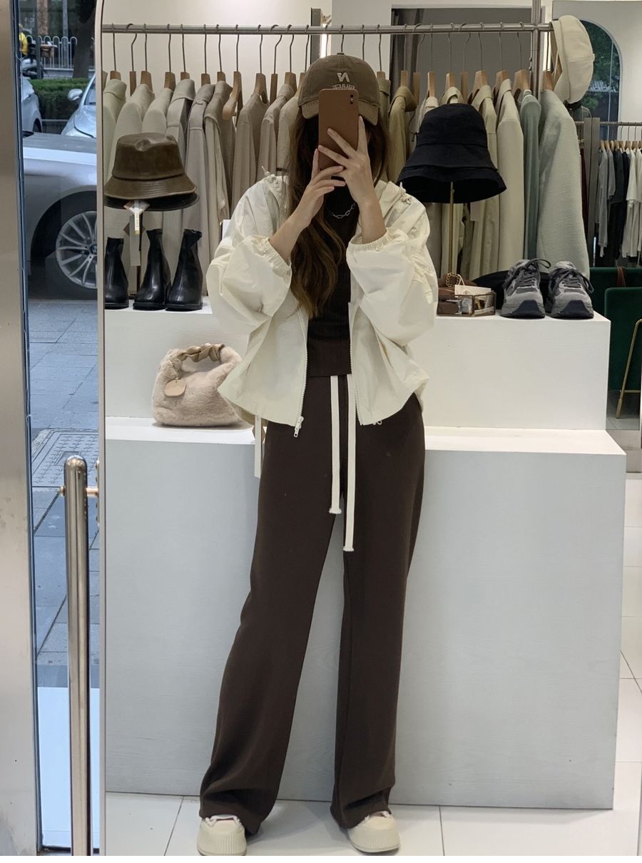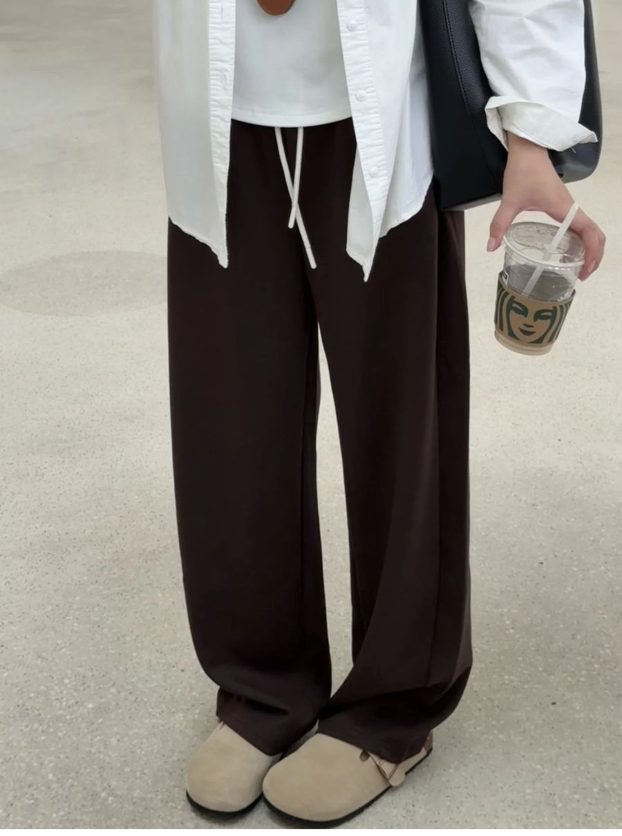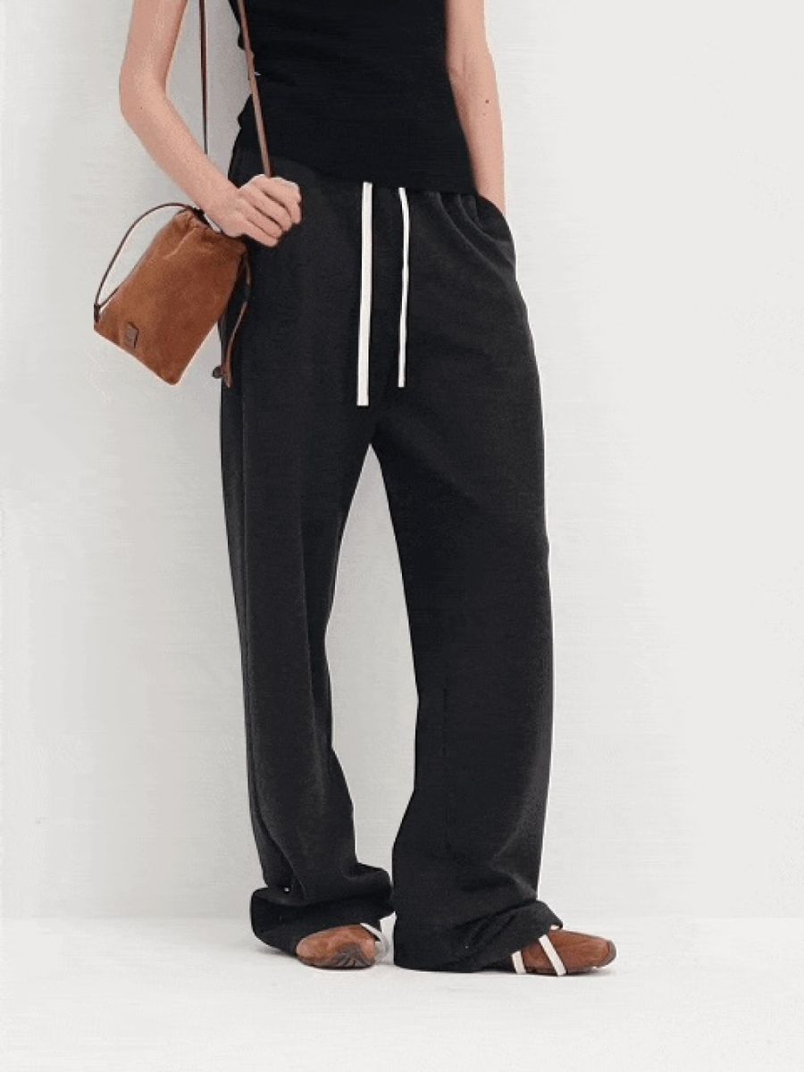 - 复刻经典运动卫裤逻辑:松紧高腰+抽绳内调,合身不勒。