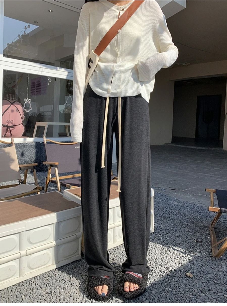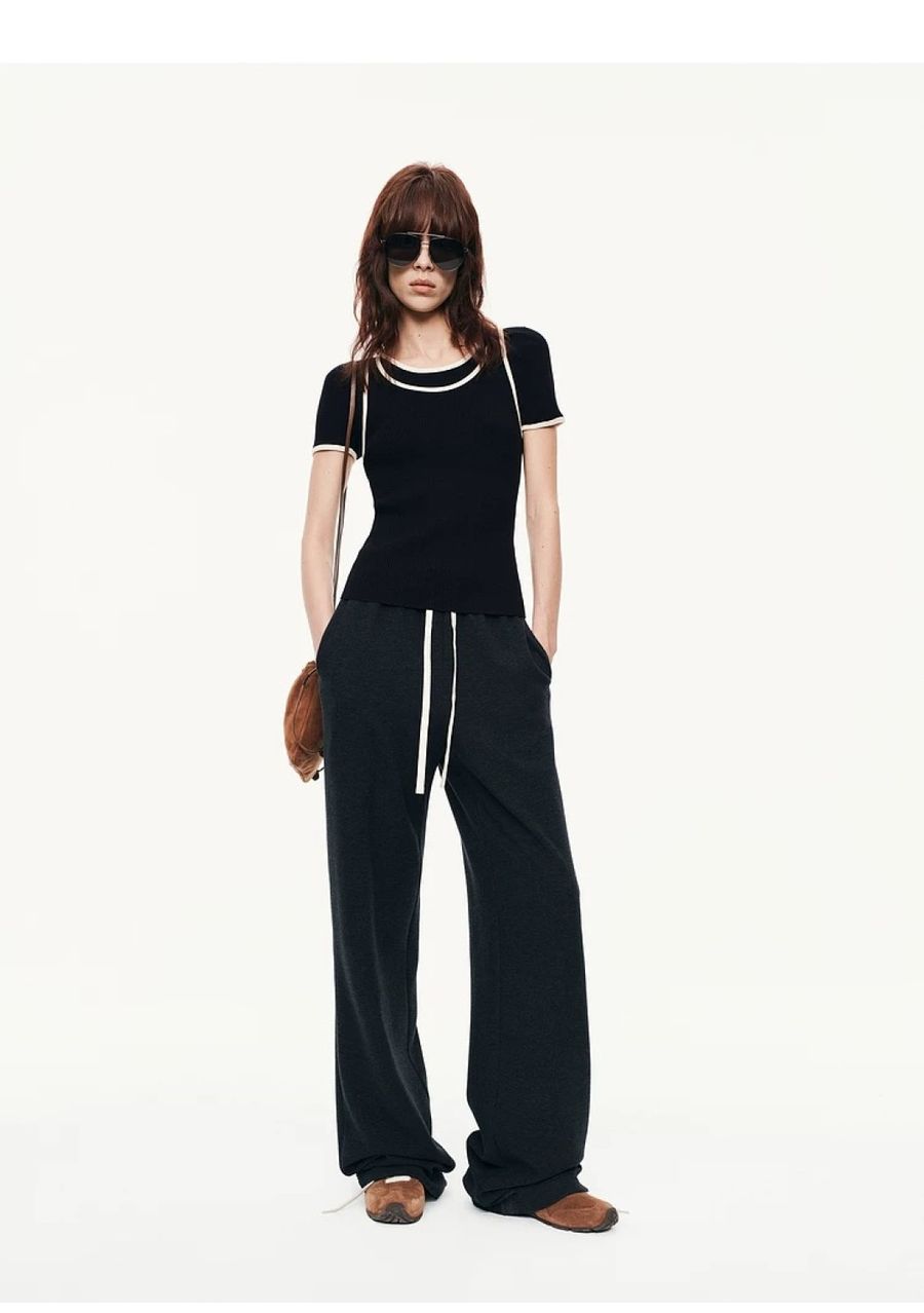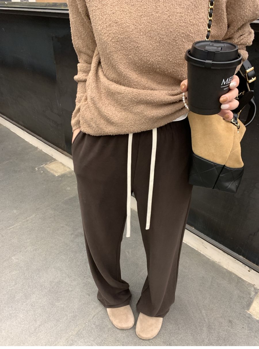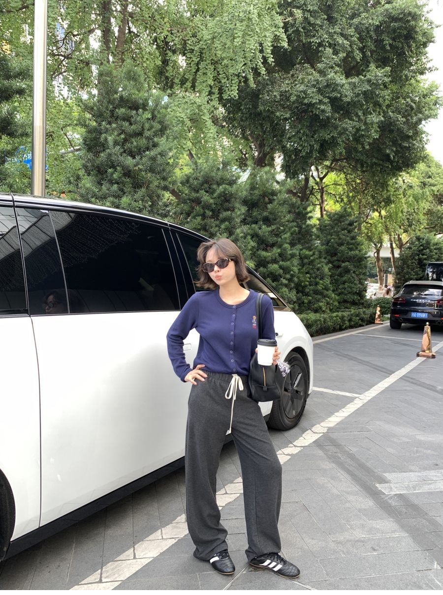 - 复刻经典运动卫裤逻辑:松紧高腰+抽绳内调,合身不勒。
