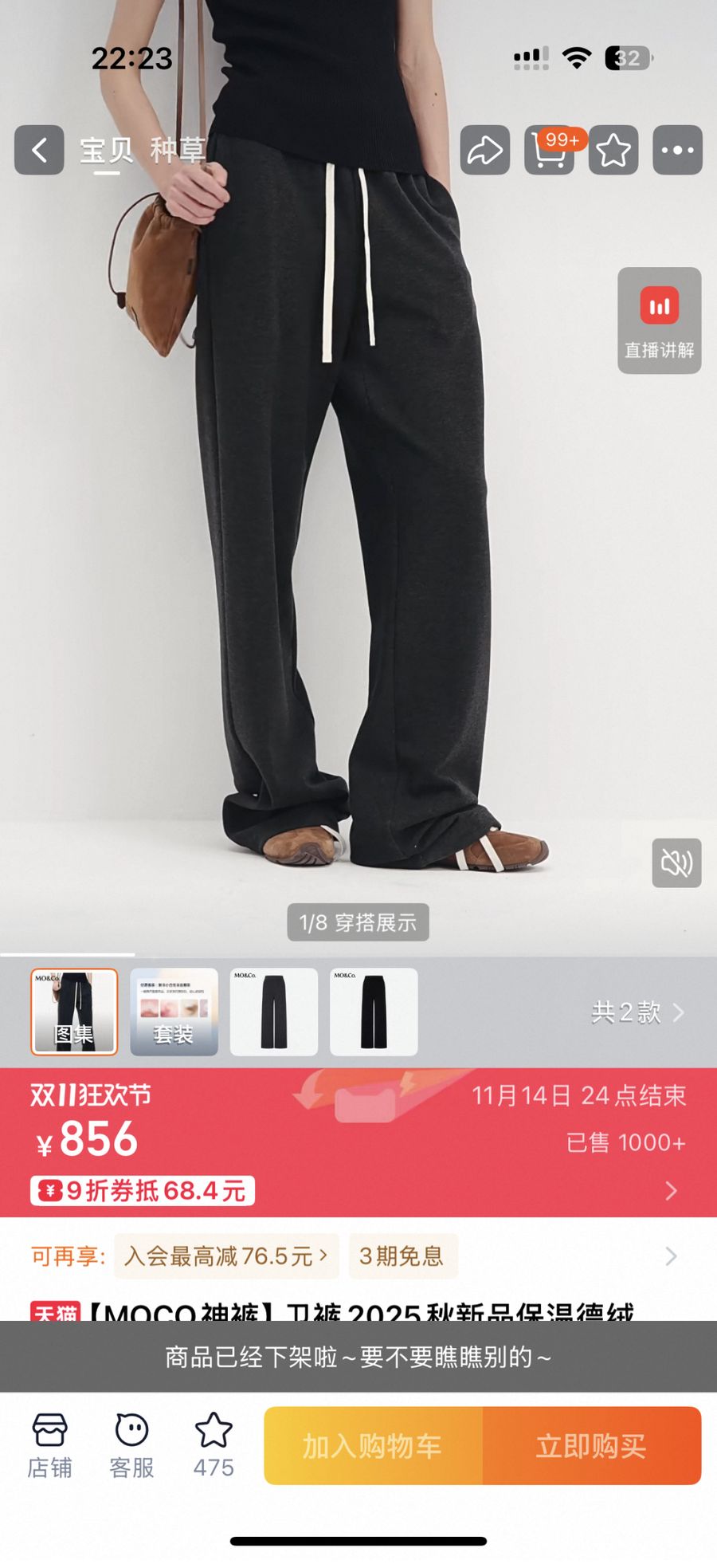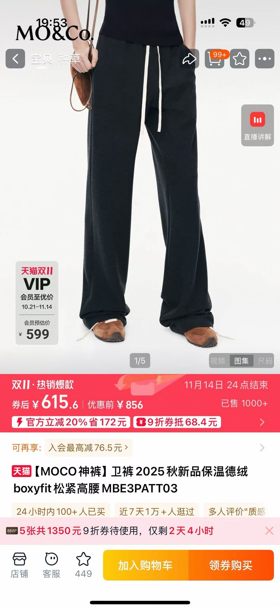 纯yuan 进口德绒|Moc*o 秋冬新品 Boxy Fit 松紧高腰休闲裤/卫裤