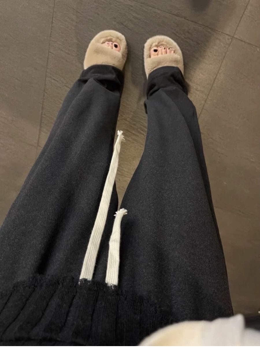 - 直筒剪裁,臀腿留足松量,垂坠显瘦,不臃肿。