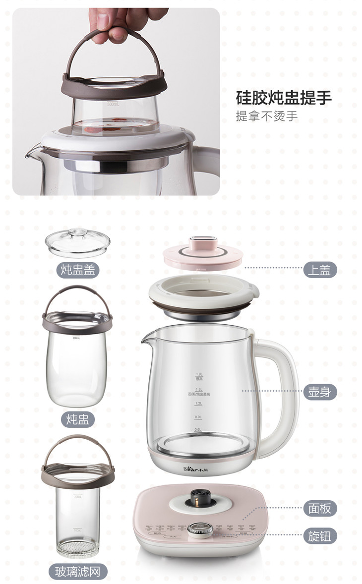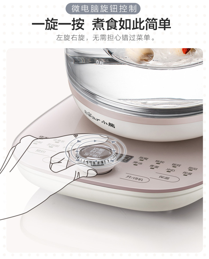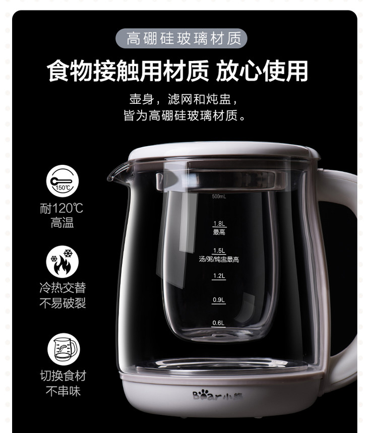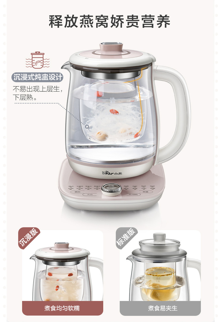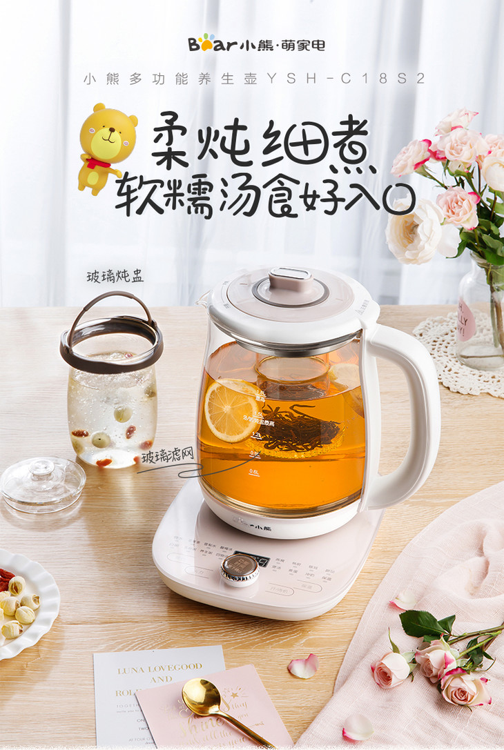 【家用电器】小熊*养生壶 YSH-C18S2煮花茶养身加厚玻璃一体隔水炖燕窝机