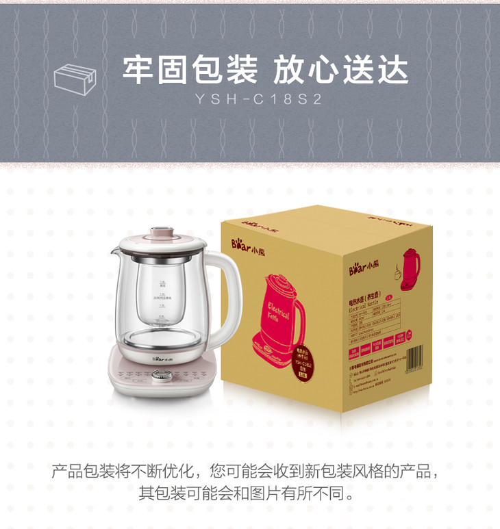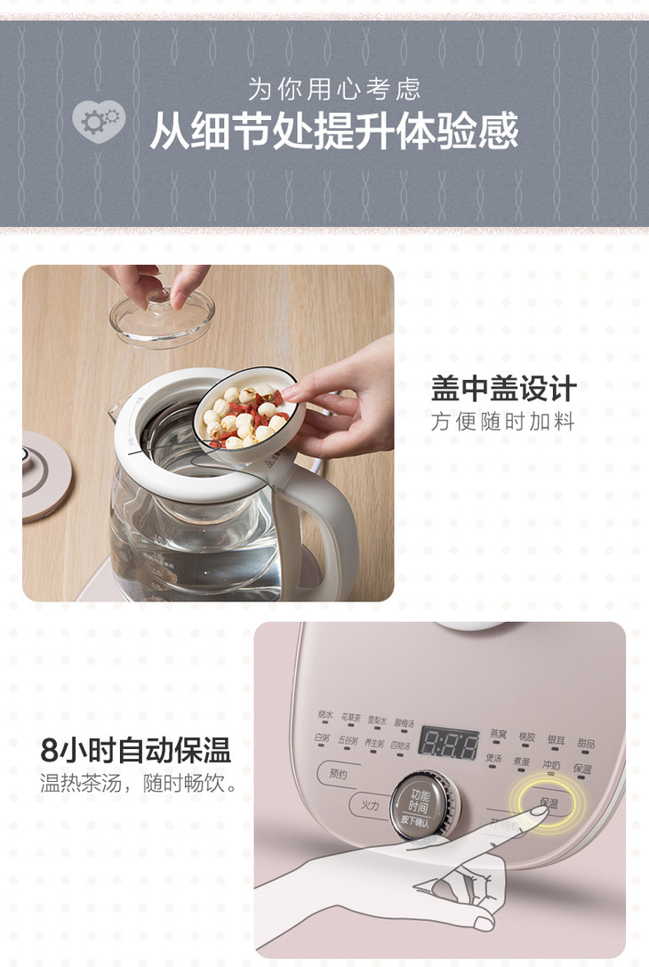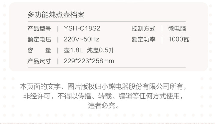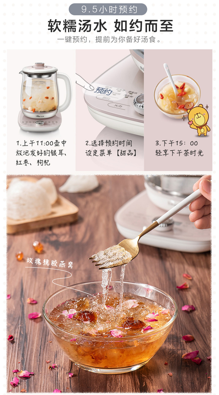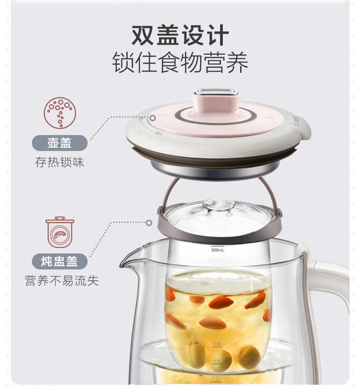 【家用电器】小熊*养生壶 YSH-C18S2煮花茶养身加厚玻璃一体隔水炖燕窝机