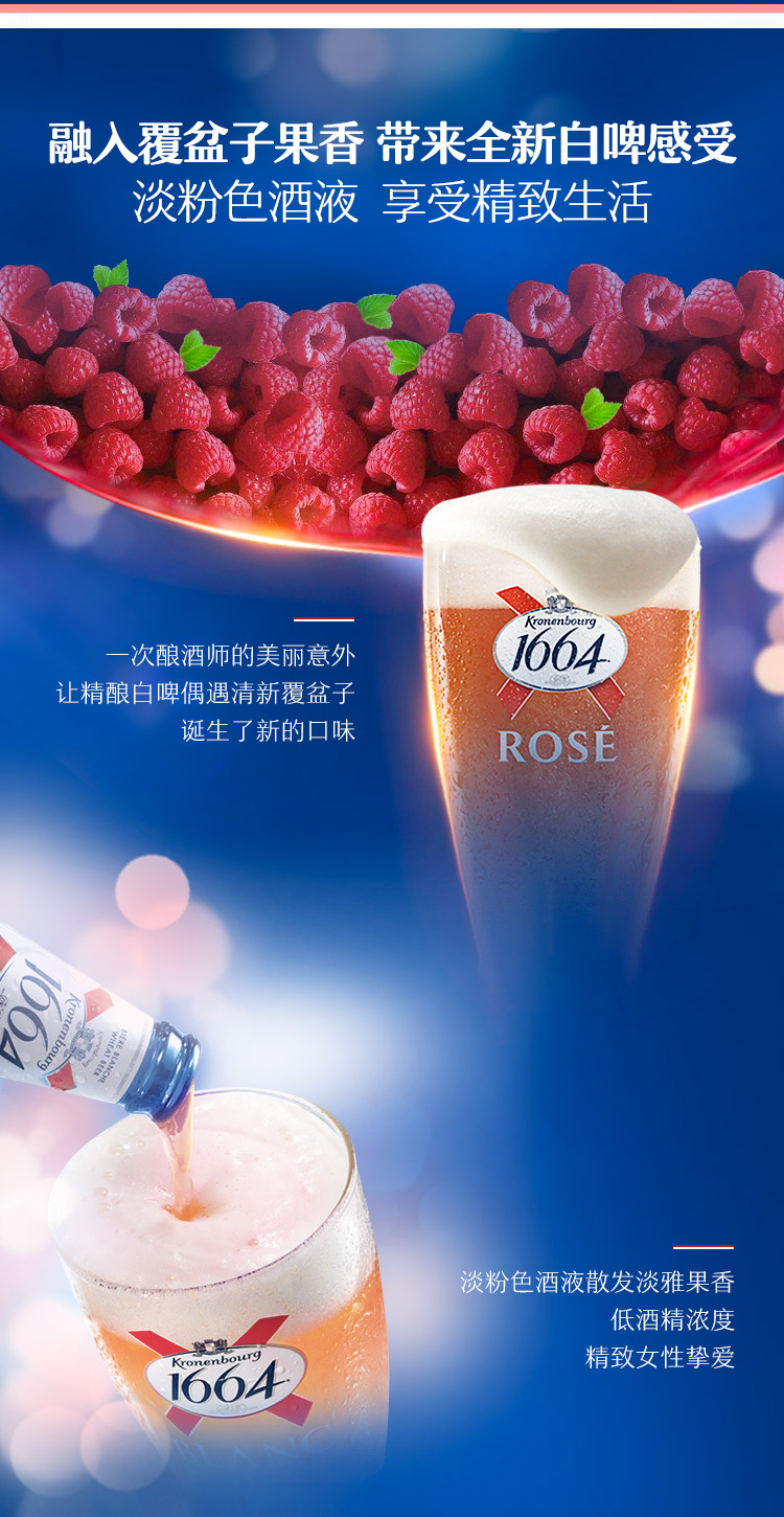国产1664桃红啤酒 250ml*24瓶 5.0%Vol