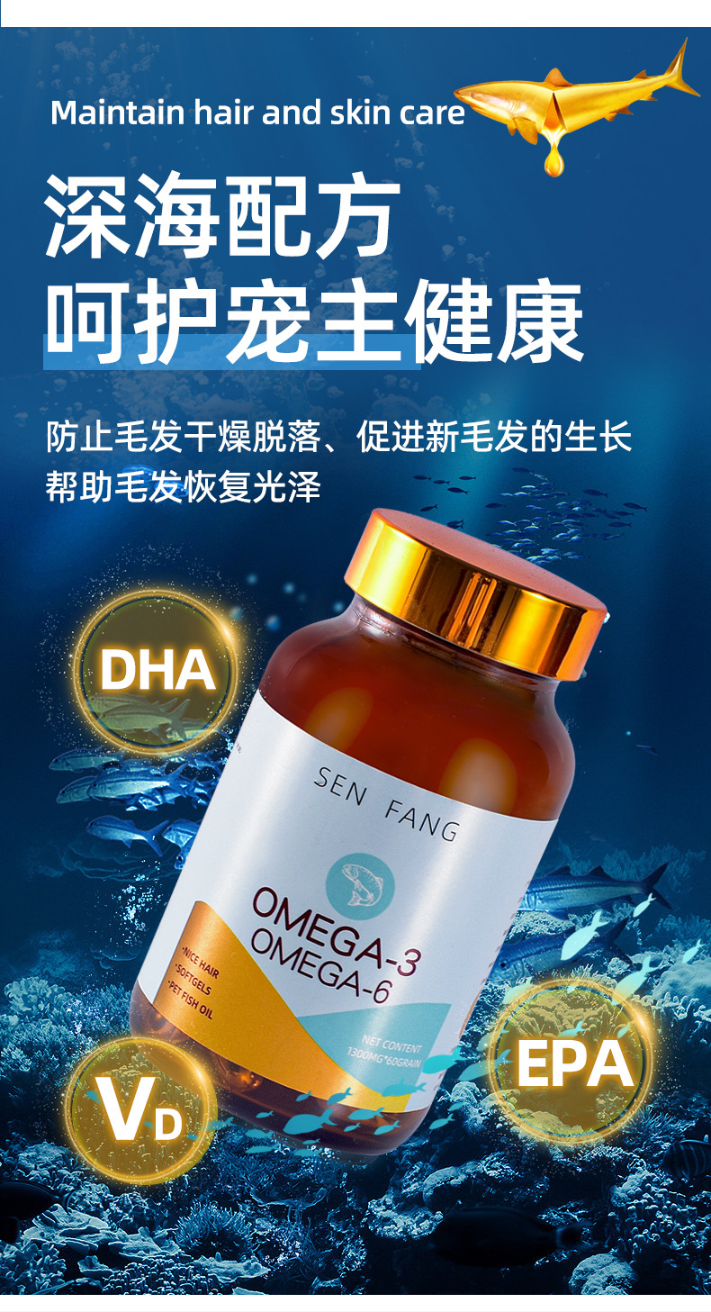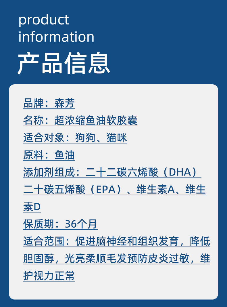 森芳 宠物鱼油胶囊颗粒犬用鱼油脂护毛护肤深海鱼油胶囊犬用60粒1瓶