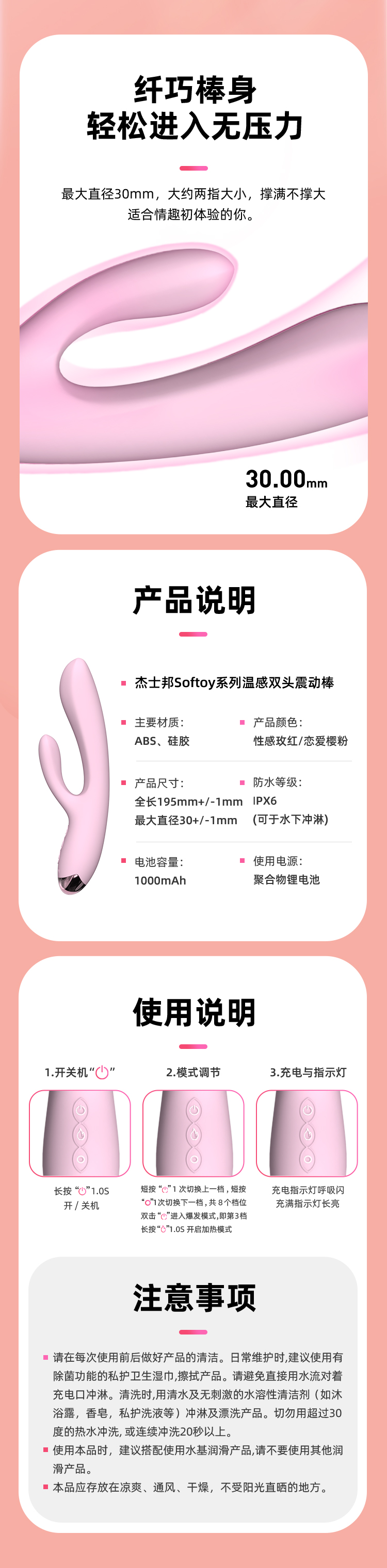 智能控温双头刺激Softoy系列温感双头震动棒恋爱樱粉【限时79元换购】